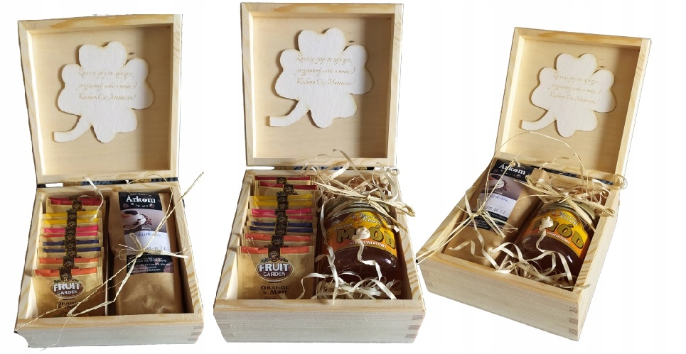 Внутри коробки есть клевер с пожеланиями, выбранными из , предлагаемых нами или , данными клиентом .