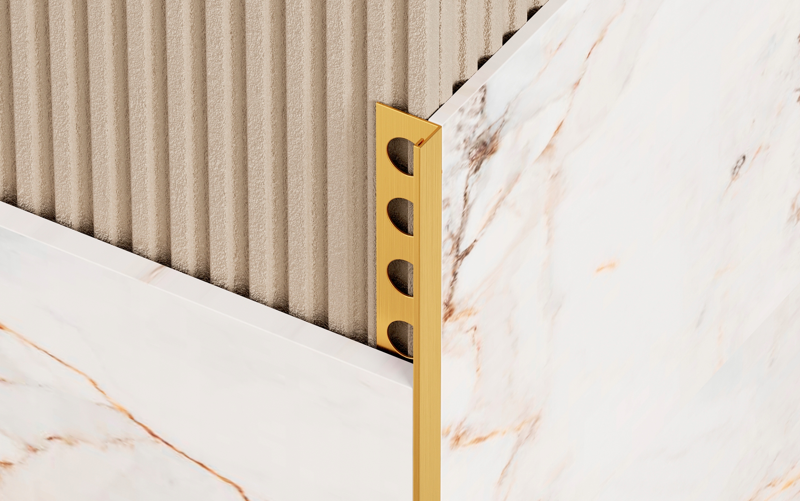 ОТДЕЛОЧНЫЕ ПОЛОСЫ L-ТИПА характеризуются квадратной формой, которая четко и элегантно закрывает внешние углы керамической плитки.