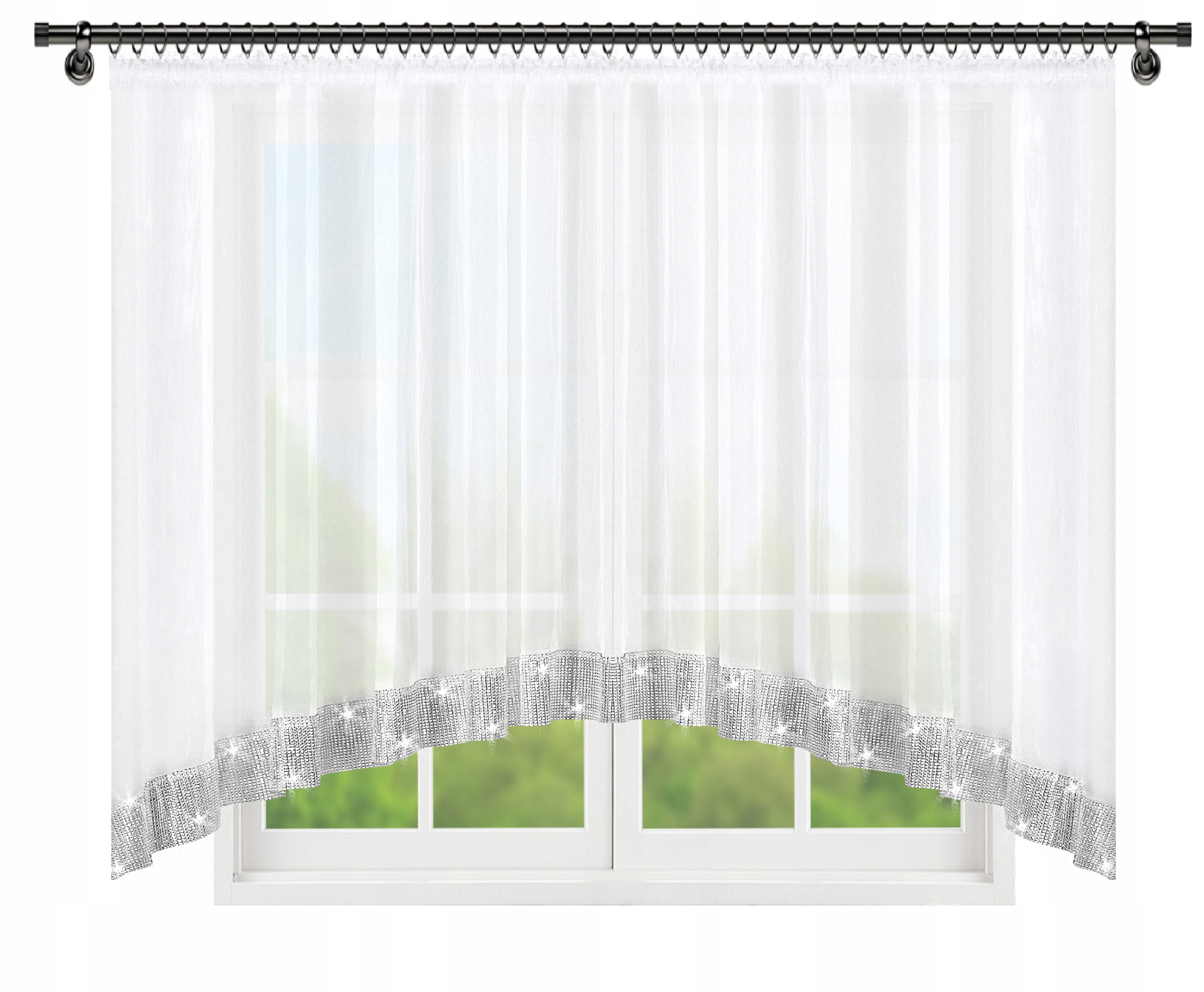 лента с цирконами, сшитыми по всей длине занавеса. Ширина ленты 6 см. Кроме того, занавес вышита на красивых хромированных гидах, добавляя эффект. На других аукционах занавески в разных измерениях.