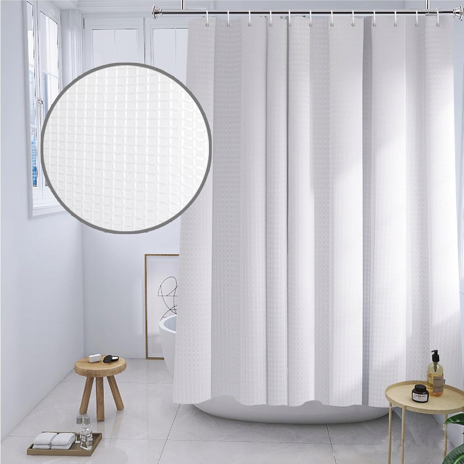 * Сделано 100% прочной полиэфирной ткани с уникальной текстурой вафельной плетения, наша занавеска для душа мягкая и удобная. Экологически чистый и длится долгое время использования. Это сразу улучшает каждую ванну, создавая расслабляющую спа -салонную среду