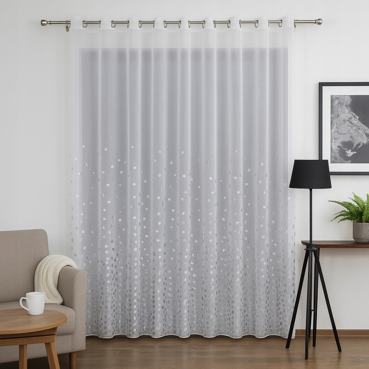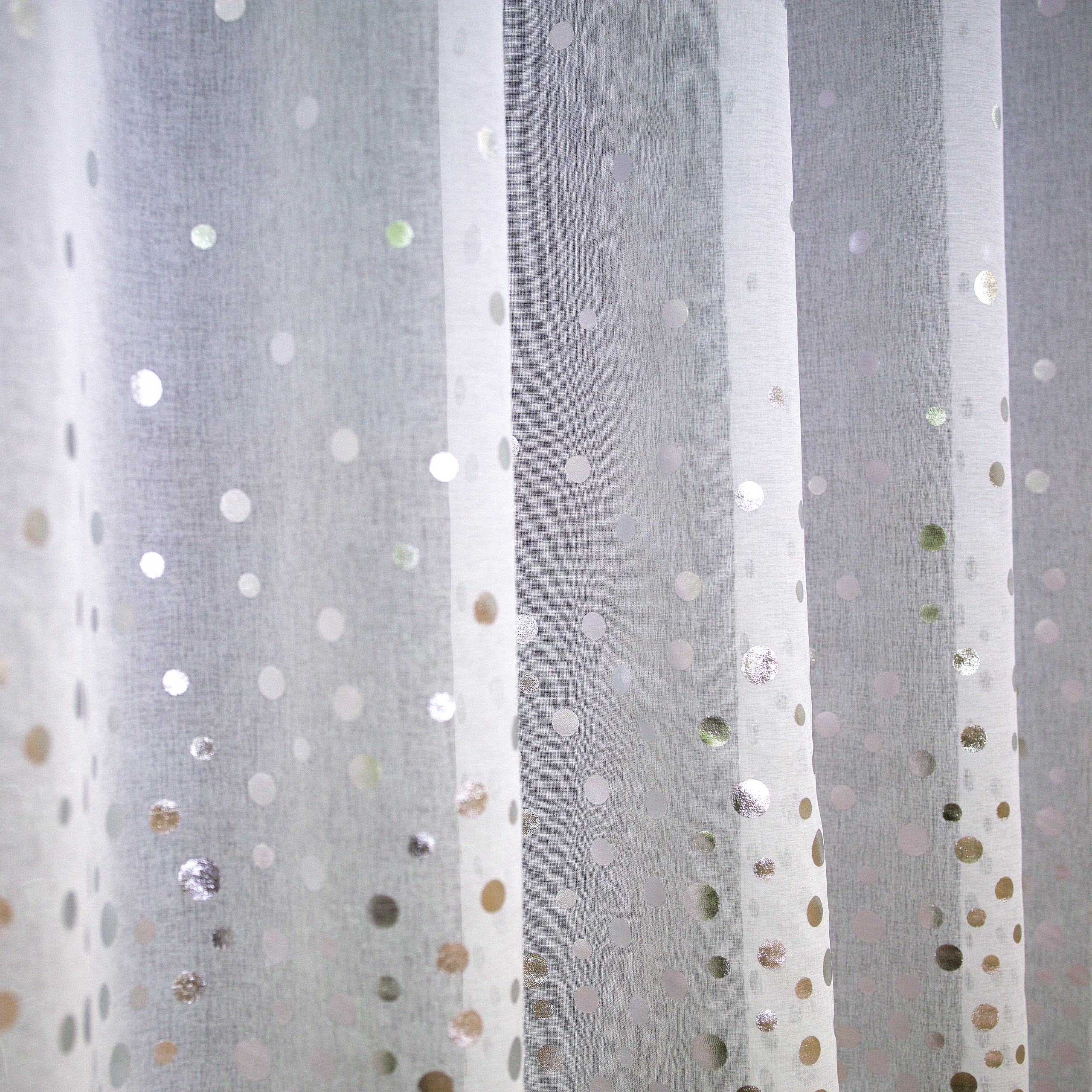 ✨ Современная занавеска готова из легкого, полупрозрачного этамина с декоративным принтом в блестящие точки. Узор постепенно утолщается вниз, давая модный эффект омбра - он привлекает глаз и осветляет интерьер без ошеломляющего.