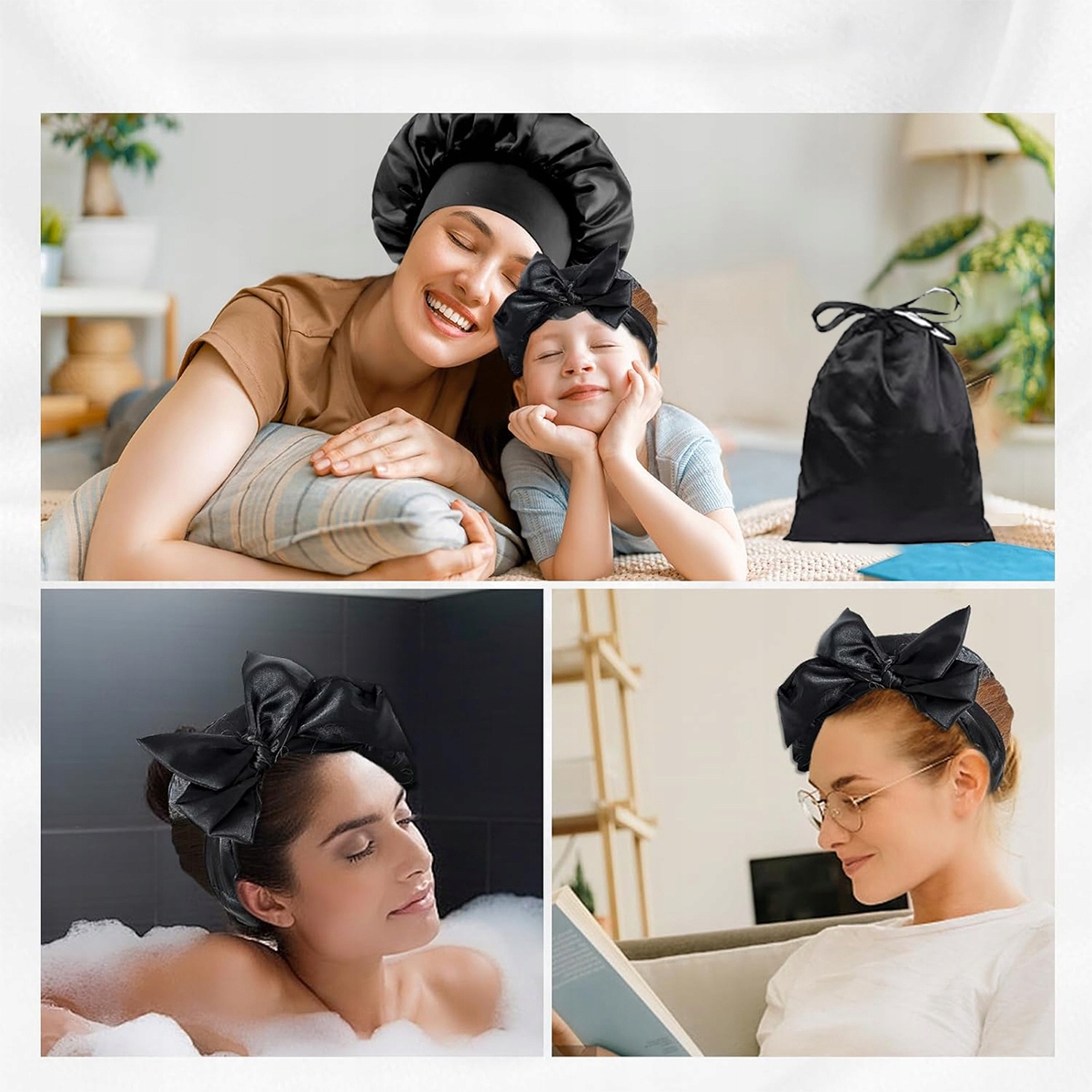 Атласные локоны без нагрева, бигуди для волос, бигуди для волос длиной 70 дюймов, сделанные своими руками, набор из 9 предметов для завивки на ночь и шапочка для длинных волос (черный)