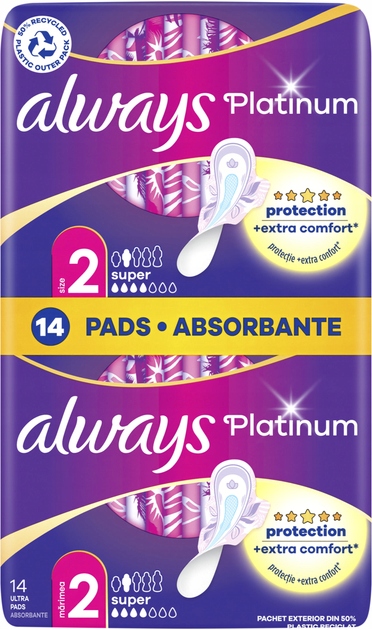 Санитарные салфетки с Always Platinum Wings Super - это продукт, рекомендуемый для использования в течение дня в случае умеренного кровотечения.