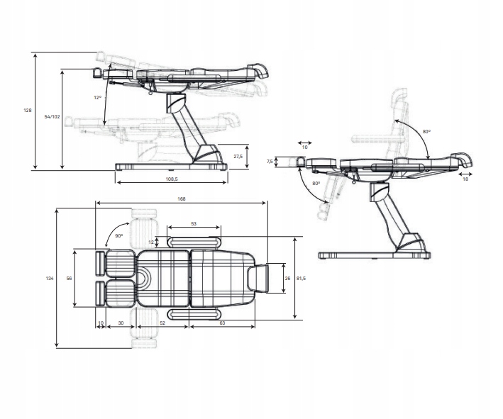 - Размеры: 168x81,5x54/128 см
