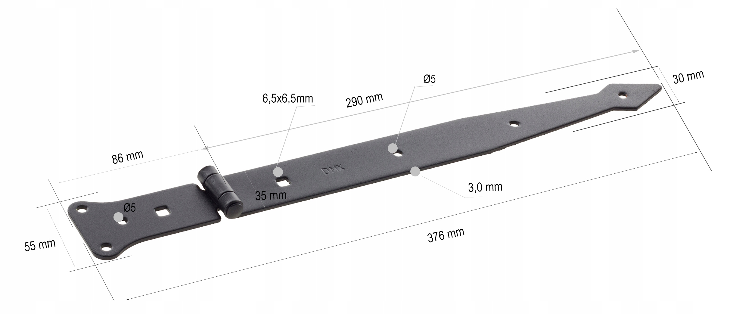 ZAWIAS CZARNY OZDOBNY DO FURTEK BRAM BRAMEK PASOWY PŁASKI MALOWANY 376x55mm