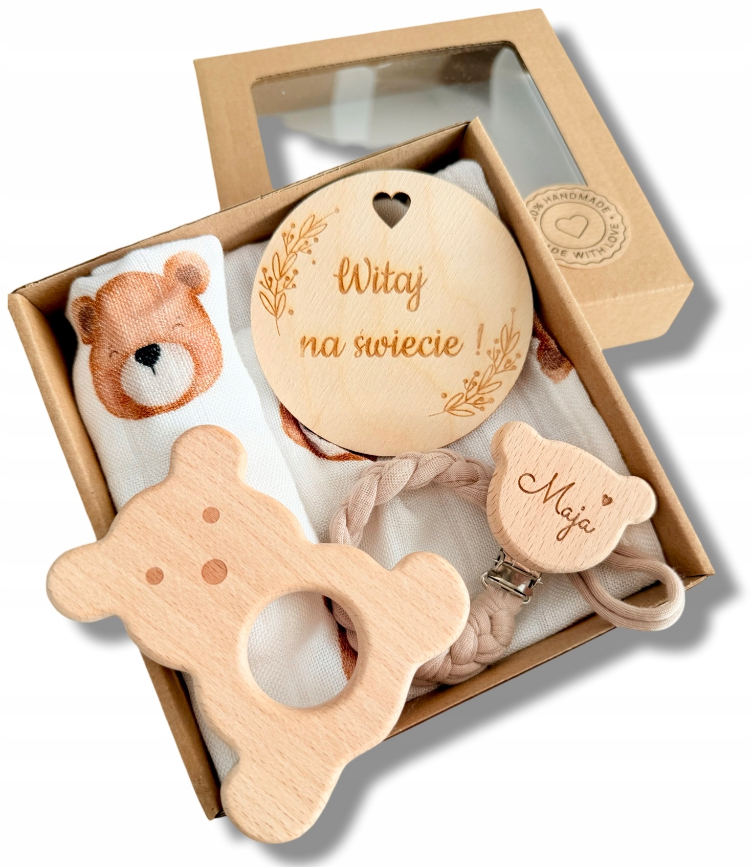 zawieszka do smoczka pleciona imieniem prezent Zawieszka+gryzak+pieluszka