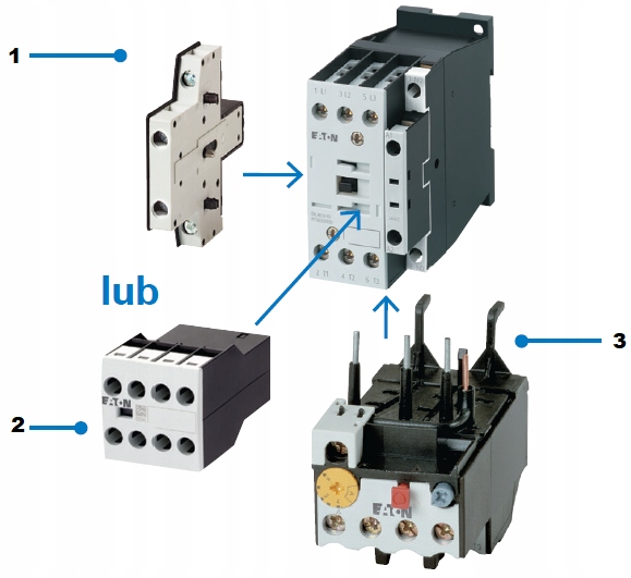 Контакторы ДИЛМ7…ДИЛМ15 можно подключать к выключателям ПКЗМ0 без использования инструментов. Это возможно благодаря реализации упомянутых элементов в так называемом технология штекерного подключения. Используя электрические и механические соединительные элементы, доступные в одной позиции каталога, вы можете быстро собрать пускатель двигателя.