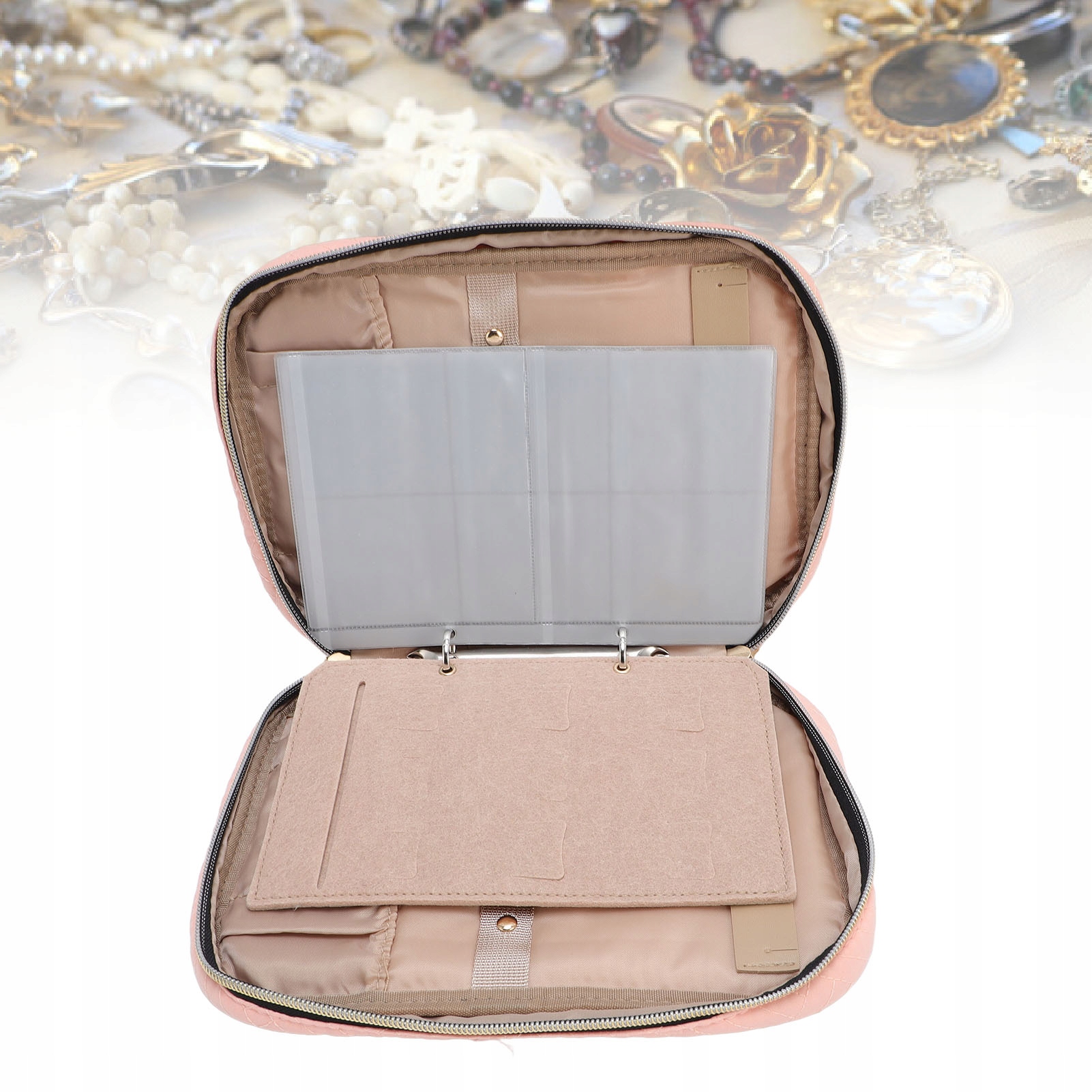 2. Регулируемый дизайн связующего: оборудованные металлические кольца, этот женский ювелирный путешественник позволяет гибко добавлять или удалять страницы на основе ваших потребностей, обеспечивая настраиваемые решения для хранения для всех ювелирных изделий