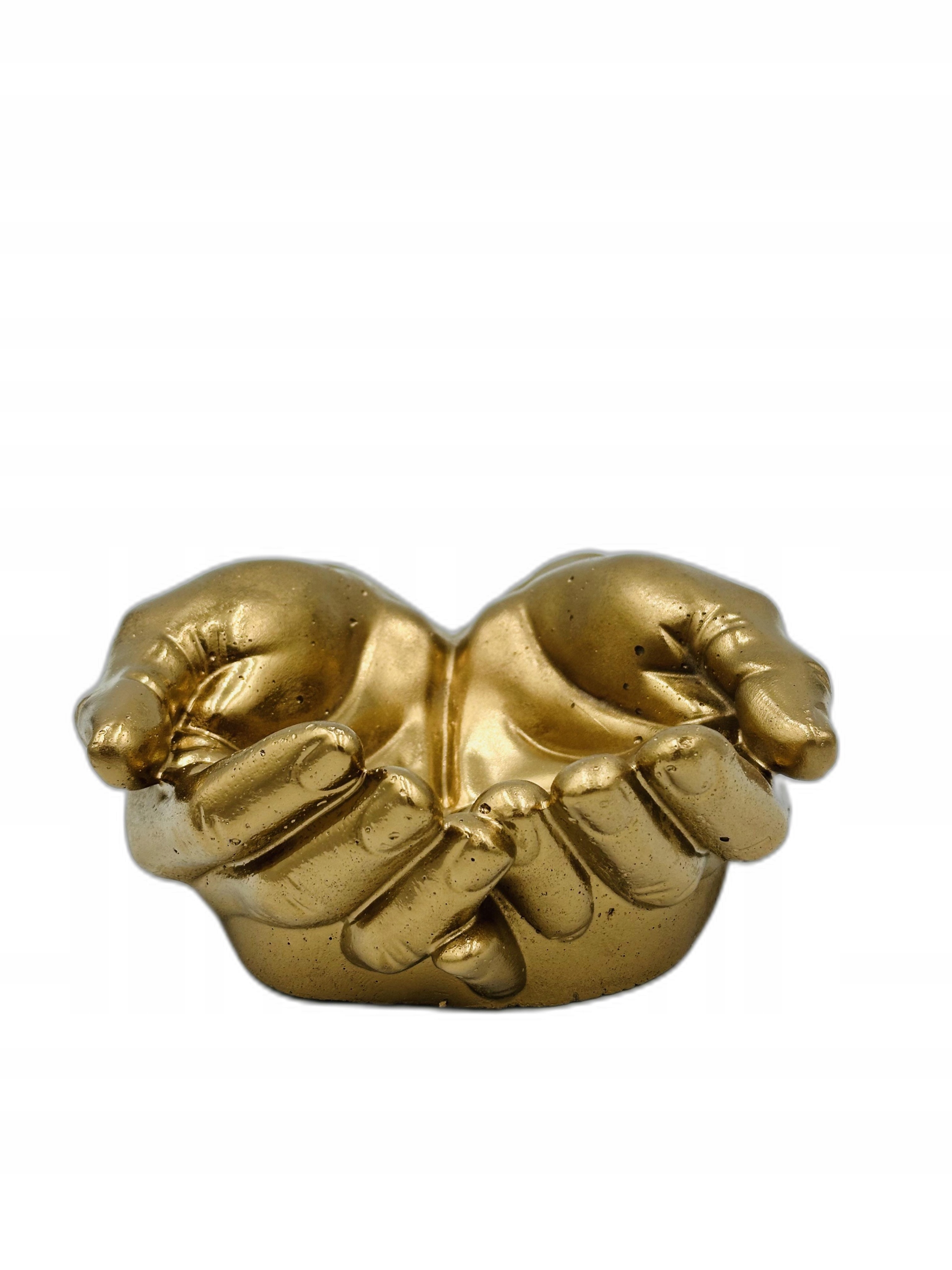 Скульптура золотые руки – уникальное украшение, сочетающее в себе строгость архитектурного бетона с роскошной металлической отделкой. Аккуратно сложенные руки образуют форму чаши - вы можете использовать их как украшение сами по себе или как основу для свечей, кристаллов, украшений или других мелких декоративных элементов.
