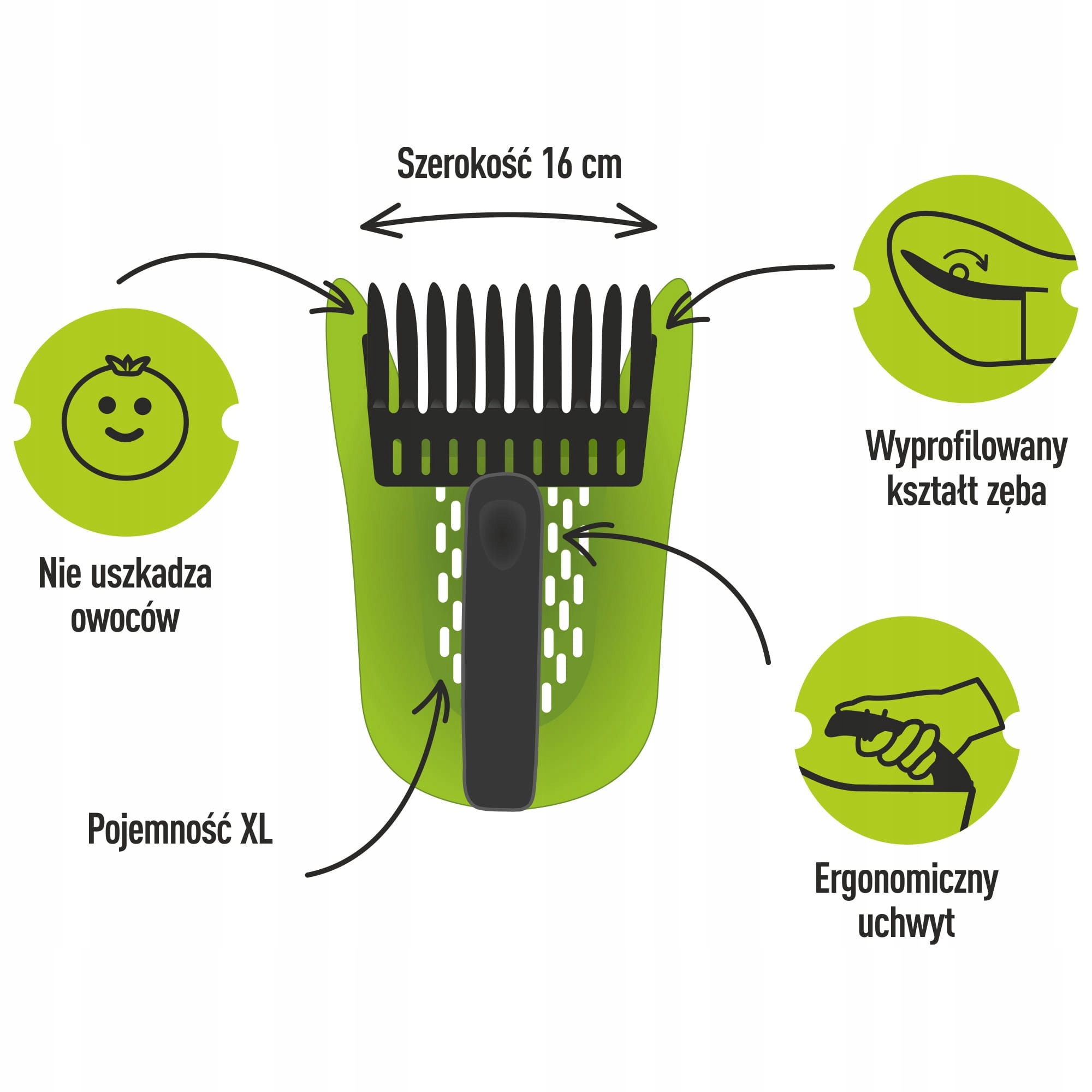 Познакомьтесь с новейшим небольшим сборщиком фруктов Browin. Он изготовлен из легкого, прочного материала, имеет дизайнерскую форму и красивый цвет сочной весенней зелени. Небольшой сборщик фруктов – незаменимый инструмент для любителей садоводства и любителей черники, черники, смородины и черноплодной рябины! Этот инструмент поможет вам собирать фрукты прямо с кустов – быстро, удобно и не пачкая рук. Вы сэкономите время и легко соберете фрукты как для непосредственного употребления, так и для вкусного домашнего варенья даже в больших количествах.