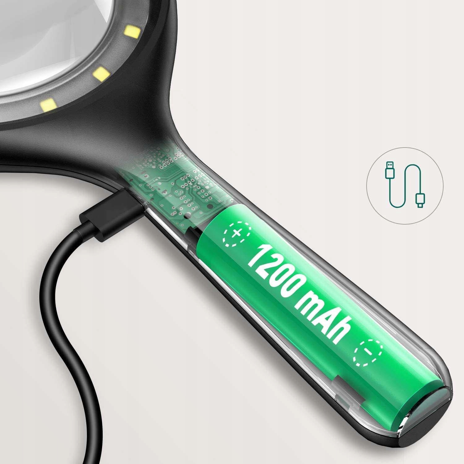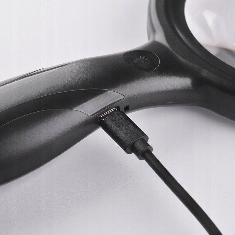 Увеличение с чтением имеет 33 встроенных светодиодных фонарей с 3 режимами яркости и двойными 30 -кратными объективами одновременно. Увеличение чтения имеет интерфейс USB, который можно заряжать в любое время.