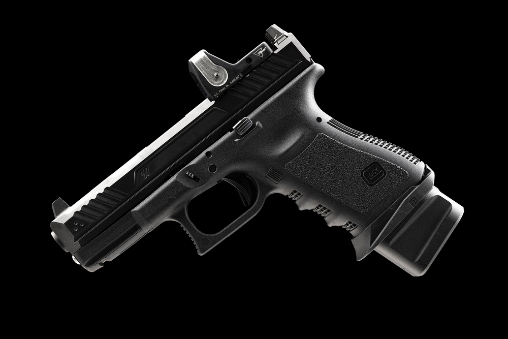 увеличил нижний колонтитул в пистолетных журналах Glock 19, обеспечивающие вместимость пять 9 -мм патронов от Strike Industries. Нижний нижний колонтитул удлиняет журнал до 140 мм, благодаря которому он соответствует пределу длины в соревнованиях по стрельбе UPSA.