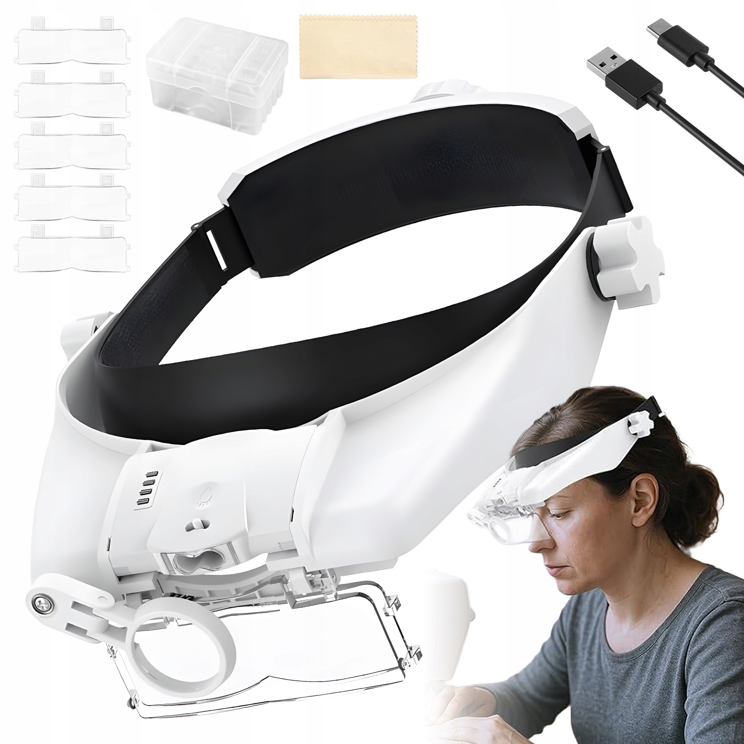 Регулировка оголовья позволяет идеально прилегать к голове, а отсутствие носовых упоров исключает давление на нос при длительном использовании. Он надежно удерживает лупу в нужном положении, позволяя вам полностью сосредоточиться на работе.