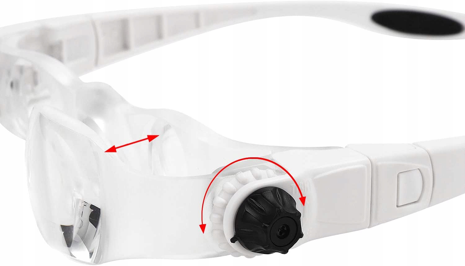 Регулировка происходит точным образом с ручками по бокам очков , не удаляя их .
