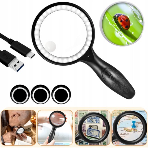 - Szkło powiększające: Dostępne w handlu i szczegółowe oglądanie małych obiektów i drobny nadruk.