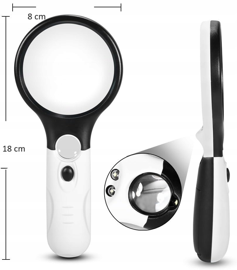 светодиодов - одна из отличительных особенностей этого стекла на увеличении - встроенный светодиодный свет. Он стратегически расположен под линзой увеличения, обеспечивая оптимальное освещение и лучшую видимость без создания эффекта боковых x -Rays. Эта функция очень полезна в условиях плохого освещения при чтении и работе над задачами, требующими большое внимание к деталям.