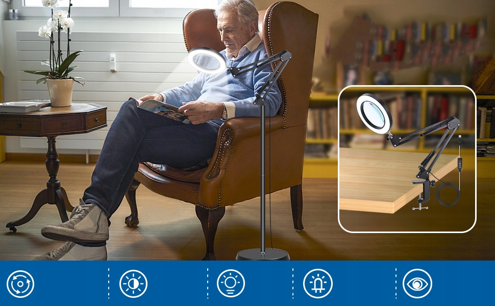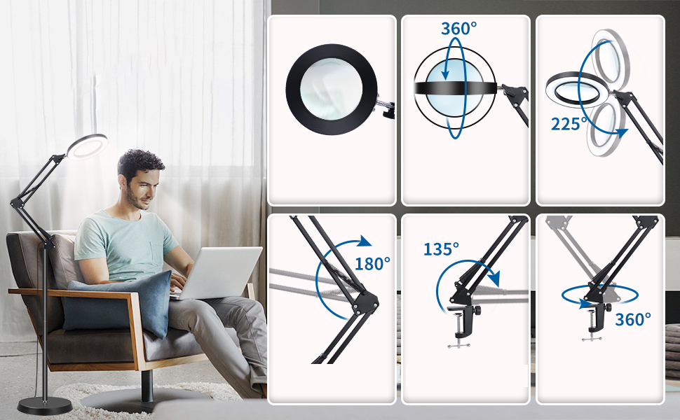 🔍️Торшер-увеличитель идеально подходит для рукоделия, вышивания крестиком, вязания, ремонта, рукоделия, шитья, чтения или других хобби.