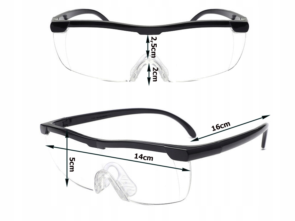 Увеличительные очки — идеальное решение для людей, которым трудно четко видеть мелкие предметы. Благодаря лупе 160 % вы без проблем сможете вдеть иголку, прочитать мелкий шрифт в газете или заменить батарейки в часах. Поэтому они идеально подходят для выполнения точных бытовых задач.
