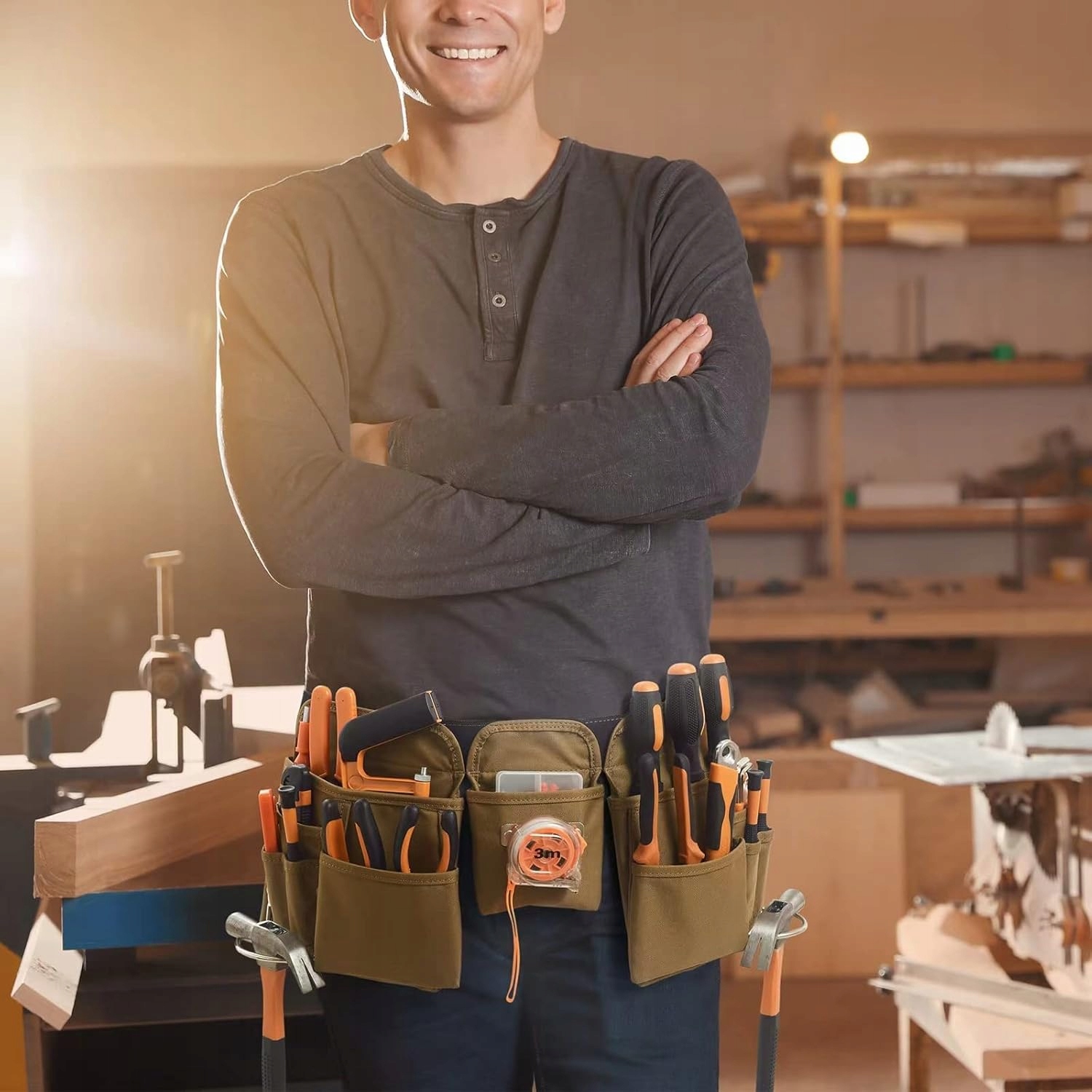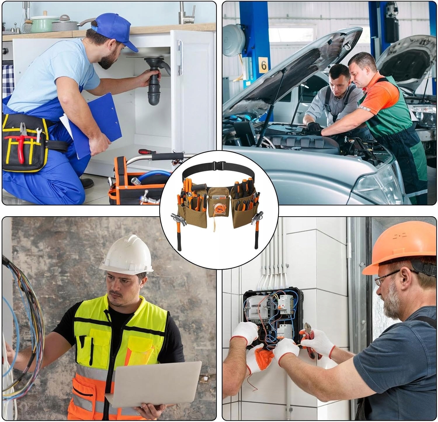 ✅ 【высококачественный материал】 Наш ремень для инструментов изготовлен из прочной оксфордской и полиэфирной ткани, которая устойчива к трениям и трение и постоянное; и каждый карман неоднократно резервут, что обеспечивает оптимальную производительность и более длительный срок службы. большой и маленький. Это означает, что вы можете носить много ручных инструментов на строительной площадке, а также держатель измерительной ленты и два стальных кольца для подвесных молотков. Инструменты предлагают инструменты длительной надежности и твердой конструкции с усиленными полосами, ручкой стального молотка и прочными швами. Доверьтесь его долговечности, чтобы соответствовать самым сложным задачам. Подходит 79-127см