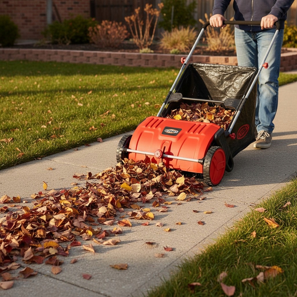 Осенью, когда с деревьев опадают листья, становится необходимой уборка сада – оставшиеся листья закрывают доступ света, воздуха и воды на газон, что может способствовать возникновению грибковых заболеваний и препятствовать правильному росту газона. Вместо традиционных граблей гораздо более удобным и менее утомительным решением является ручная подметальная машина/сборщик листьев.