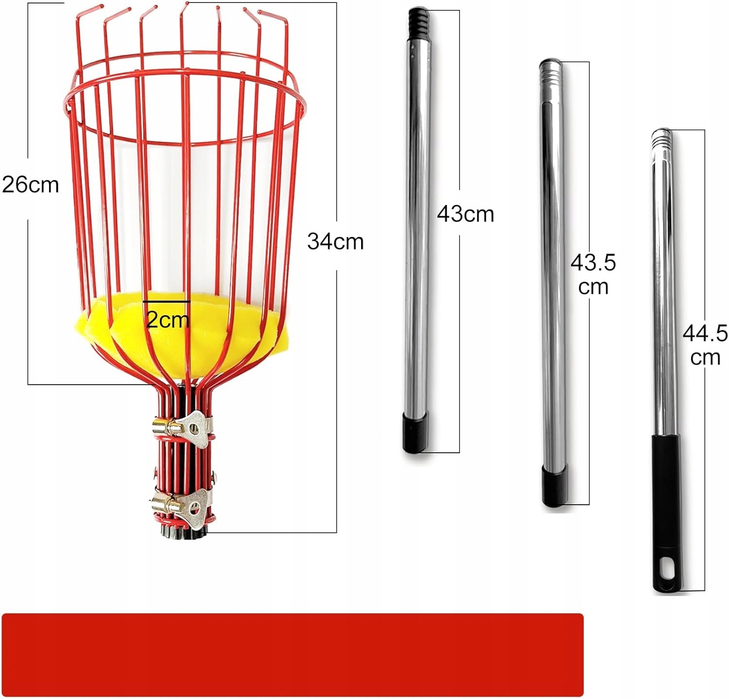 - Инструмент для сбора фруктов с удлинителями из 6 частей, 2 регулируемыми зажимами, 1 корзиной для сбора фруктов и 1 гибкой пенопластовой подушкой. Он прочный, легкий, не гнётся и не изнашивается даже при многократном использовании.