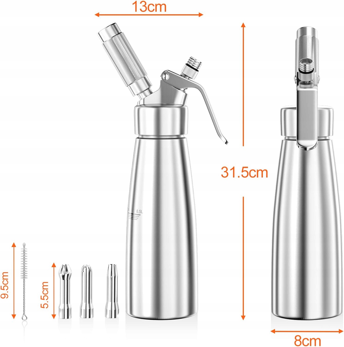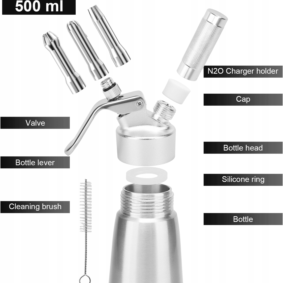 🍰 Высокая емкость , оборудованная контейнером с емкостью 500 мл, алюминиевой ручкой и тремя советами для прорастания, этот алюминиевый крем -дозатор - все, что вам нужно, чтобы ваши творения выглядели так же хорошо, как и вкус.
