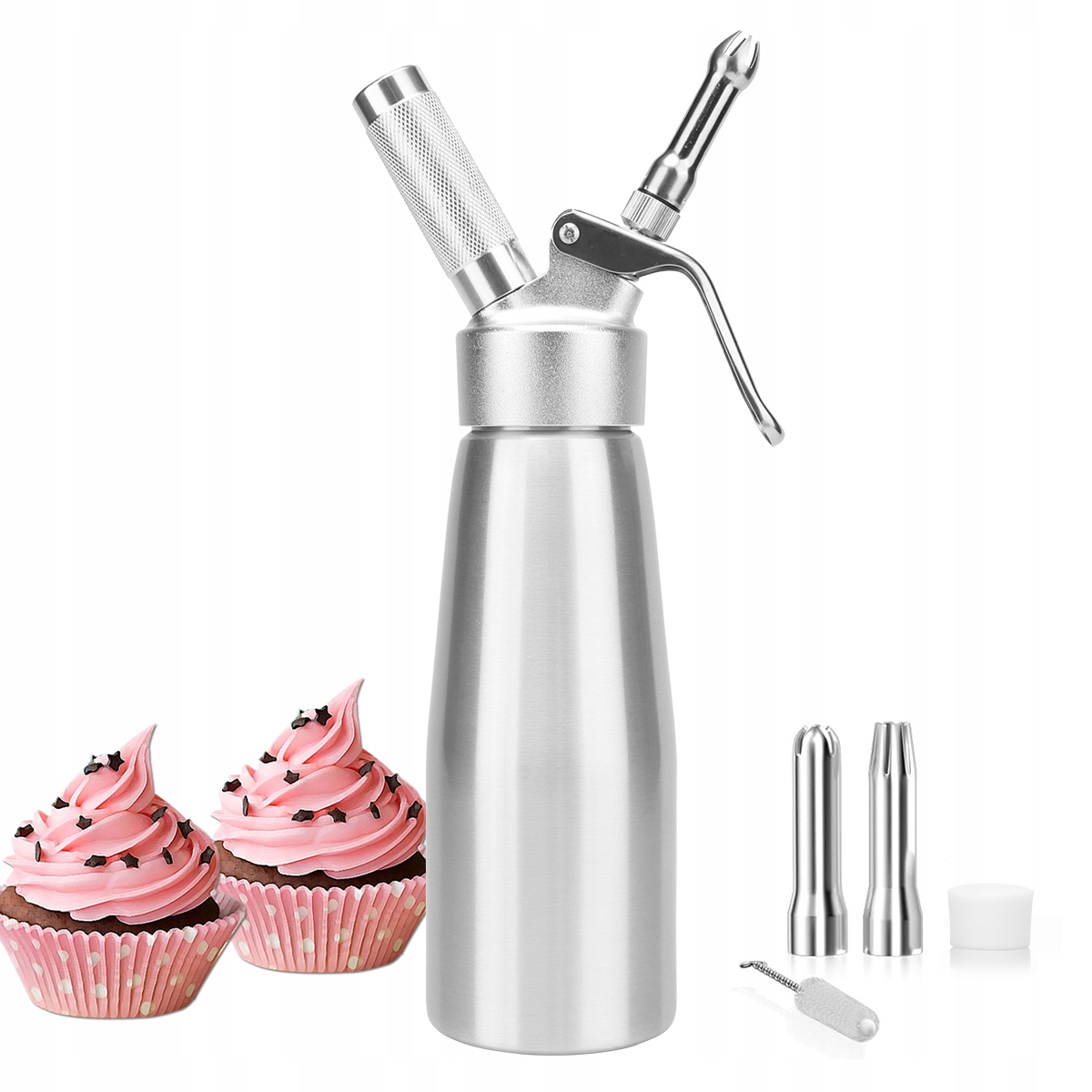 🧁 Ускоряет популярное устройство для создания крема для повседневного использования Этот кремовый дозатор идеально подходит для украшения взбитых сливок, тортов на день рождения, мороженого, сыра, пирожных, коктейлей и других десертов. Вы будете удивлены его универсальностью и удобством.