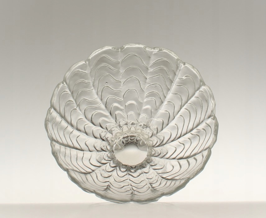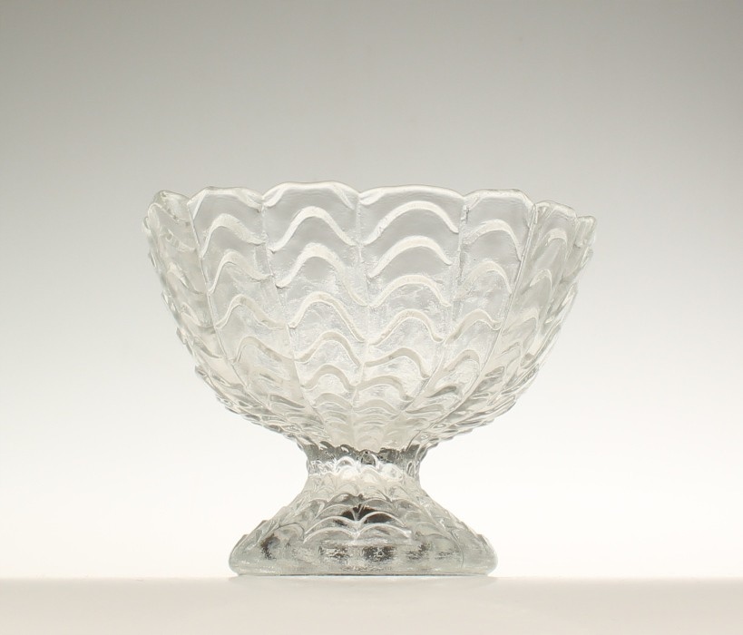 Чашка/сахарница из бесцветного прессованного стекла из серии «Фала» по дизайну Яна Дроста. Произведено на Зомбковицком стекольном заводе в Домбровой Гурнице. 1970-е годы.