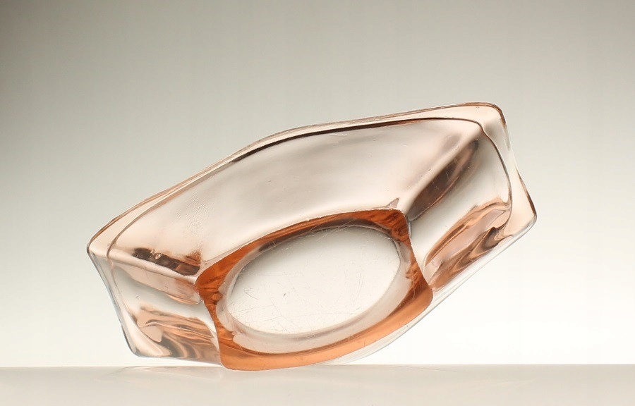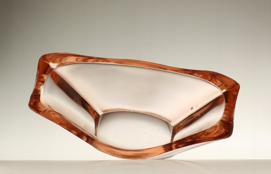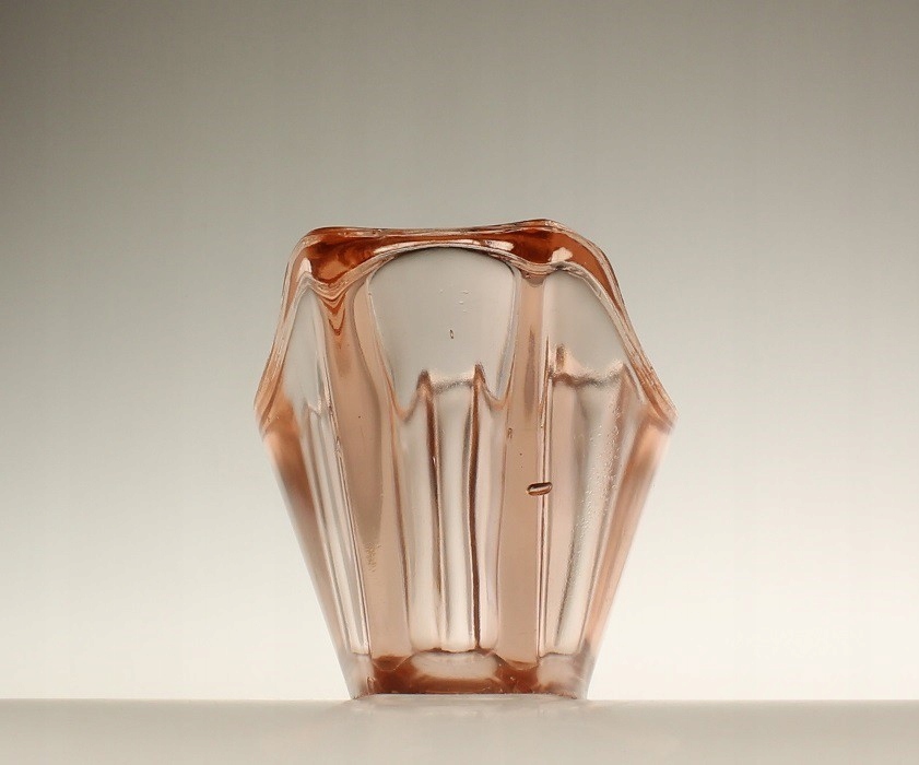 Жардиньера из розового прессованного стекла. Дизайн Ян Дрост. Произведено на отечественном стекольном заводе «Зомбковице» в Домбровой Гурнице. 1970-е годы