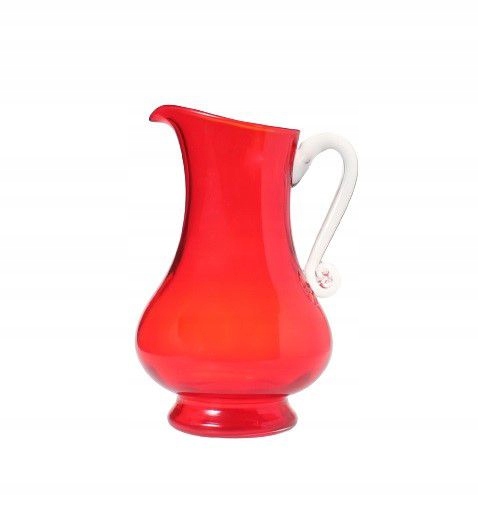 Красный кувшин из натриевого стекла ручной формовки. Дизайн Людвика Федоровича для H.S.A. «Сташиц» в Домбровой Гурниче – филиал Стекольного завода «Зомбковице» в Домбровой Гурниче. Входит в серию «Силезская Рустика». 1980-е годы