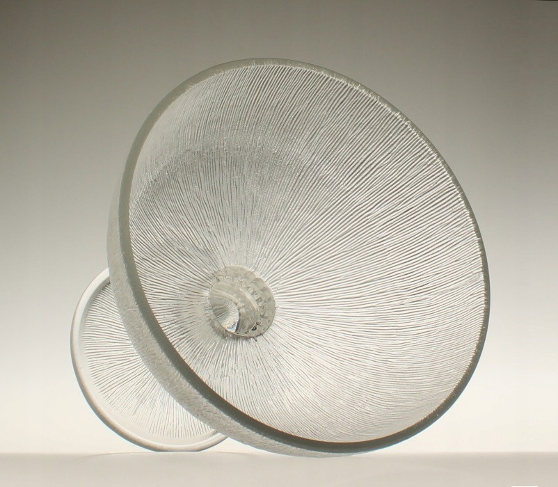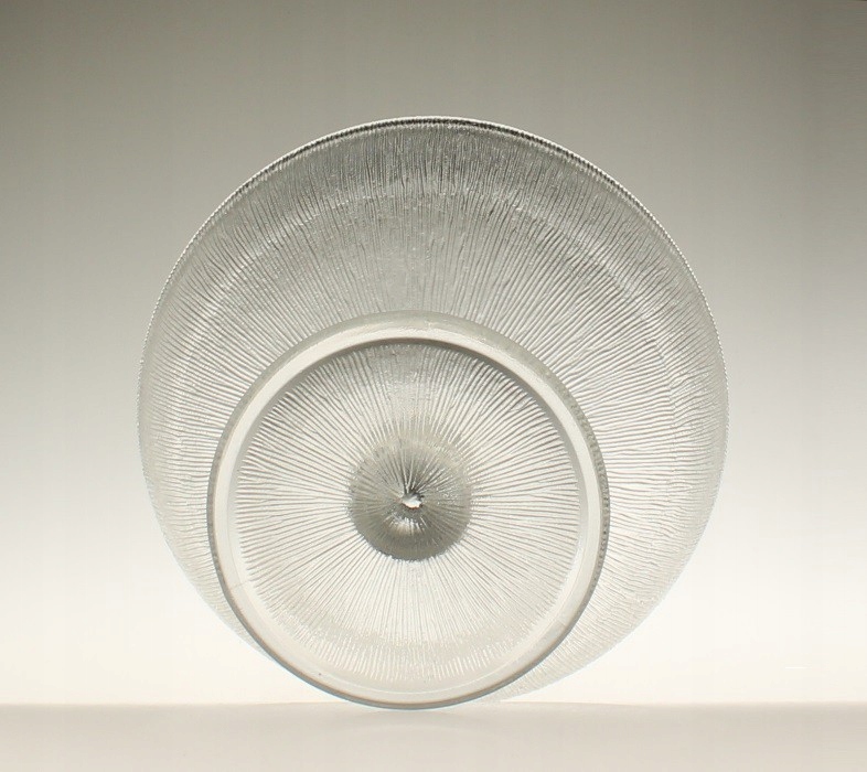 Фруктовая тарелка из бесцветного прессованного стекла. Произведено на отечественном стекольном заводе «Зомбковице» в Домбровой Гурнице. Дизайн Людвика Федоровича. 1970-е годы