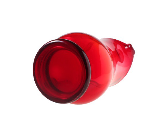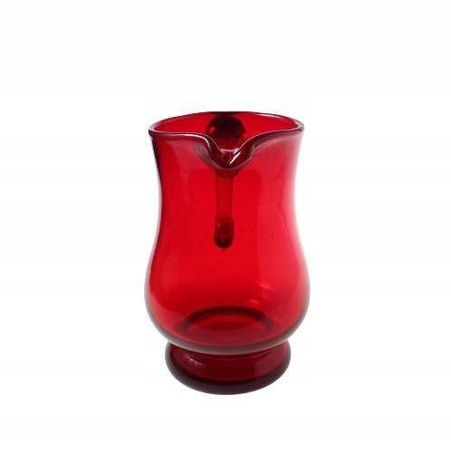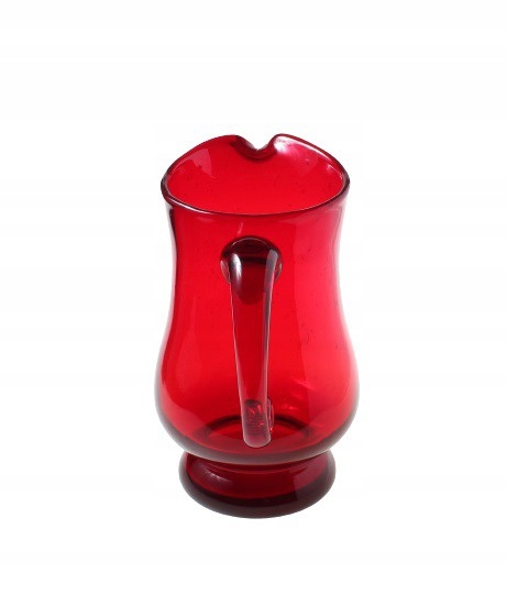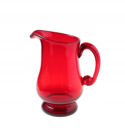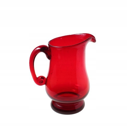 Рубиновый кувшин из содового стекла ручной формовки, тип антико. Дизайн Людвика Федоровича для Художественного стекольного завода «Сташиц» в Домбровой Гурниче, который является филиалом Домашнего стекольного завода «Зомбковице» в Домбровой Гурниче. 1970-е/1980-е годы
