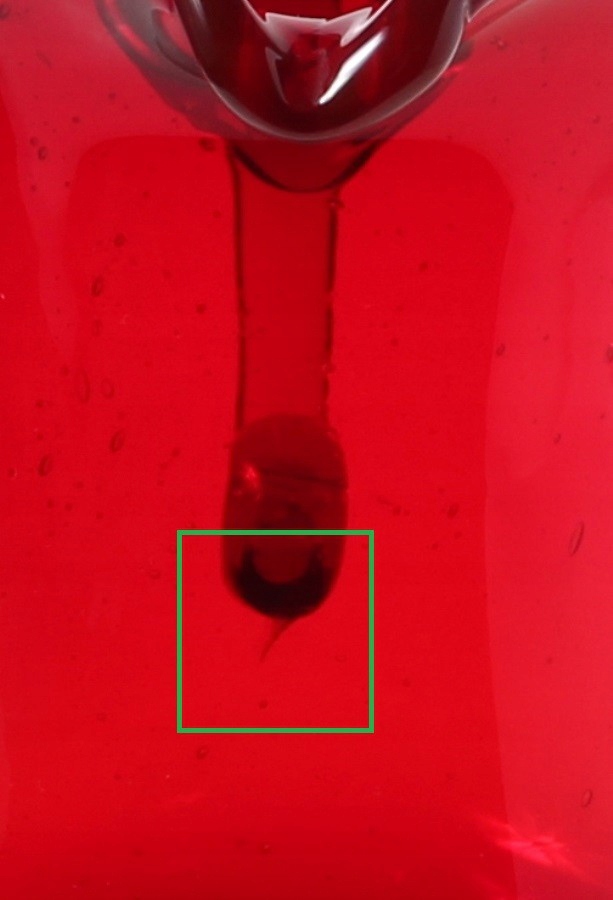 Интерьер чистый, без осадка. Поверхностная трещина под нижней проушиной крепления. Верхний край и нижний край целы.