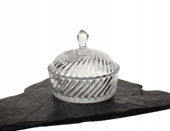 Конфетница/сахарница из бесцветного прессованного стекла. Произведено на отечественном стекольном заводе «Зомбковице» в Домбровой Гурнице. Дизайн Рышарда Сервицкого. Серия «Вир». 1970-е годы