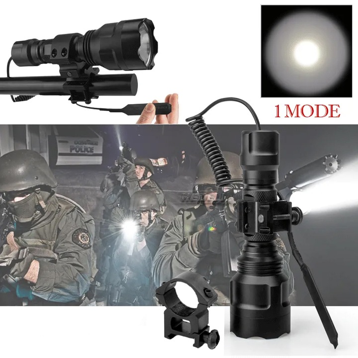 Профессиональный тактический и охотничий фонарь с большим радиусом действия. Оборудование предназначено не только для охотников и силовых структур благодаря возможности установки на оружие, но и для всех требовательных пользователей, которые ценят высочайшее качество и производительность. Сочетание компактного дизайна и впечатляющей мощности света делает наш фонарь 2-в-1 для тактического и повседневного использования.Основным источником света является светодиод мощностью 3 Вт, что позволяет ему светить с максимальной мощностью 300 л.с. люмен на расстоянии 200 метров.Благодаря эффективному светодиоду фонарик потребляет очень мало энергии, а срок его службы составляет 100 000 часов.Фонарик имеет 1 режим работы.Фонарик работает от комплектного 18650 Аккумулятор емкостью 8800 мАч, 4,2 В. Заряжается аккумулятор с помощью зарядной станции, входящей в комплект, от сети или от автомобильного зарядного устройства в зависимости от необходимости.