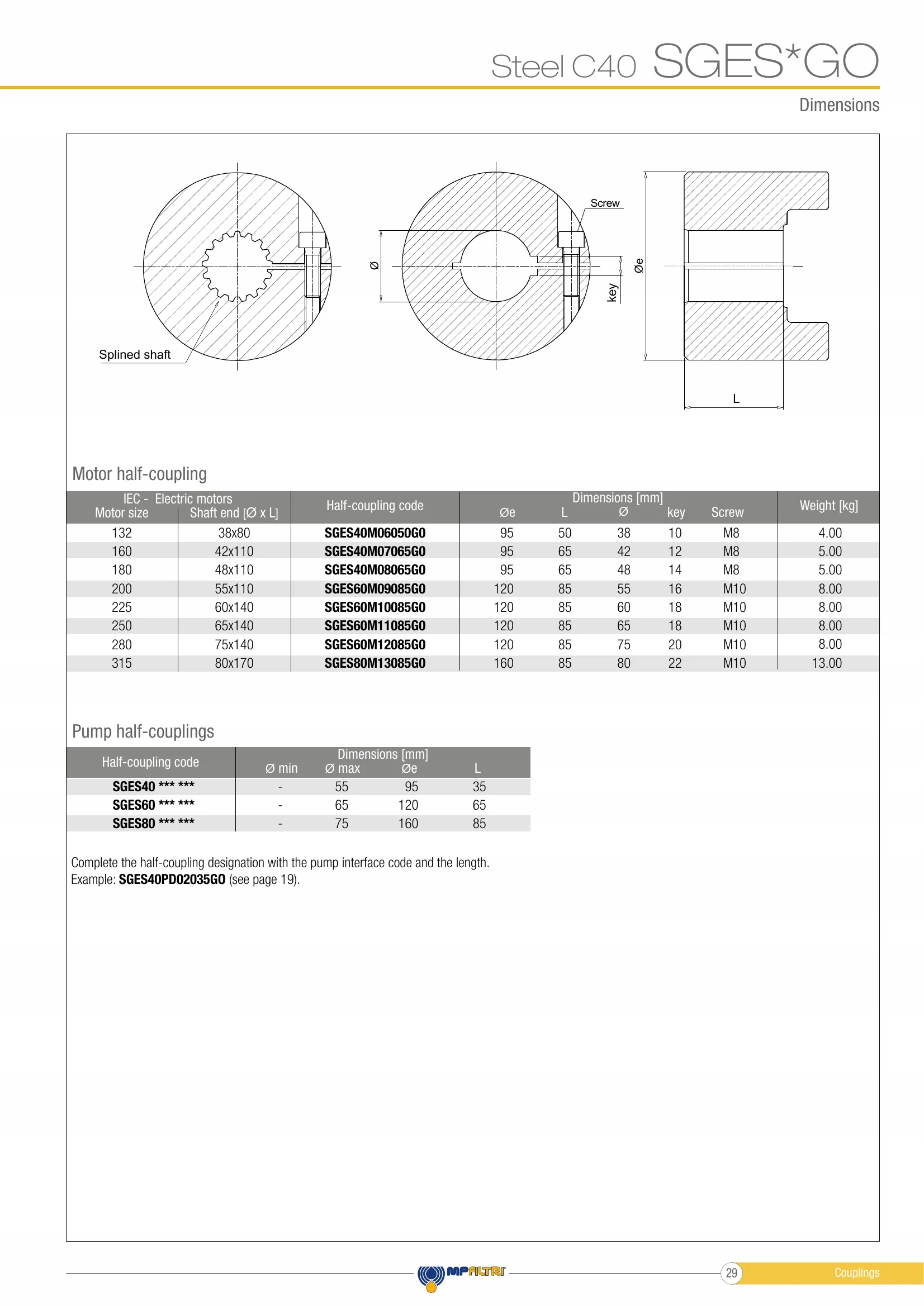 Классификация Элементы гидроагрегатов > Щековые муфты и промежуточные корпуса > Муфты со стороны насоса
