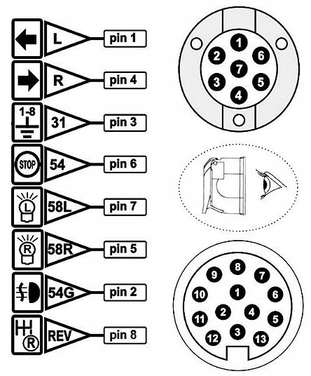 Модуль разработан для подключения 8-проводной установки прицепа (т. е. с фонарями заднего хода) и должен использоваться с 13-контактной розеткой, но может использоваться с Розетка 7-контактная (тогда без поддержки фонарей заднего хода).