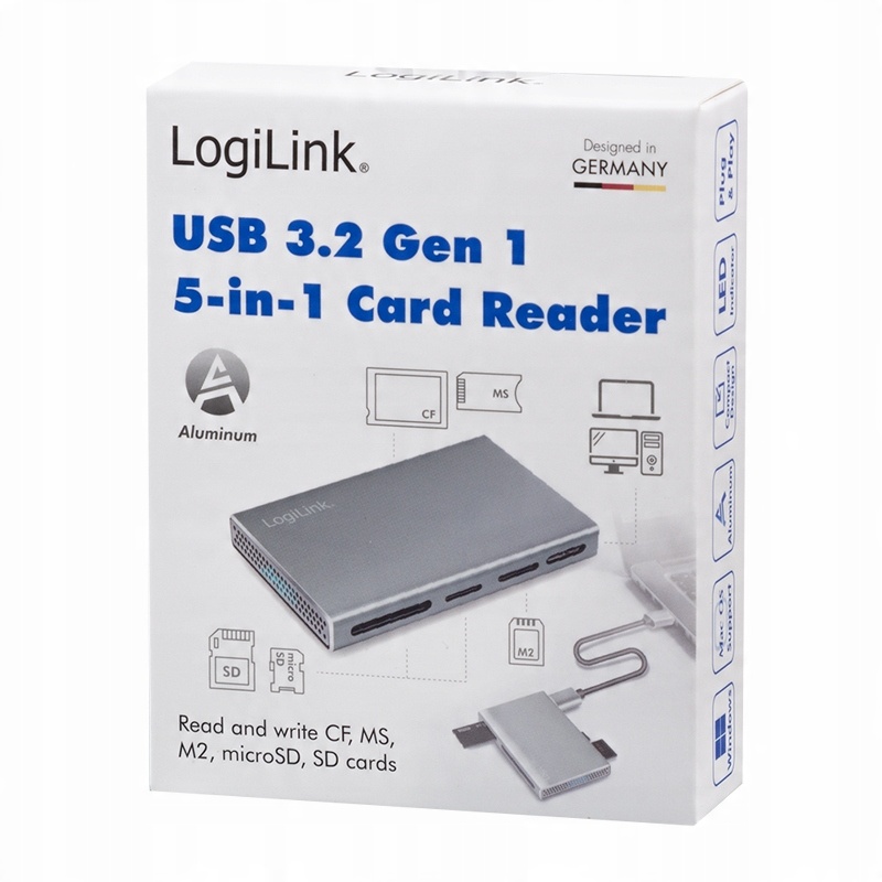 USB 3.2 Gen1 5-в-1 Card Reader LogiLink — надежный инструмент для профессионалов и пользователей, которые ищут эффективный способ управления данными с различных карт памяти. Благодаря широкой совместимости, быстрой передаче данных и прочной конструкции он является идеальным выбором для многих приложений.