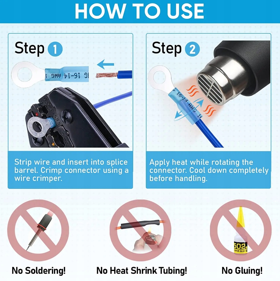 【ТИП и РАЗМЕР】: Ассортимент разъемов включает красные, синие и желтые разъемы, которые можно использовать с проводами AWG от 22 до 10. Пять типов разъемов: штыревой разъем, кольцевой разъем (размер контакта: № 10, ¼ дюйма, 5/16 дюйма, 3/8 дюйма), быстроразъемный разъем «мама», быстроразъемный разъем «папа» и вилочный разъем (размер контактов: №10) входят в каждый комплект разъемов.