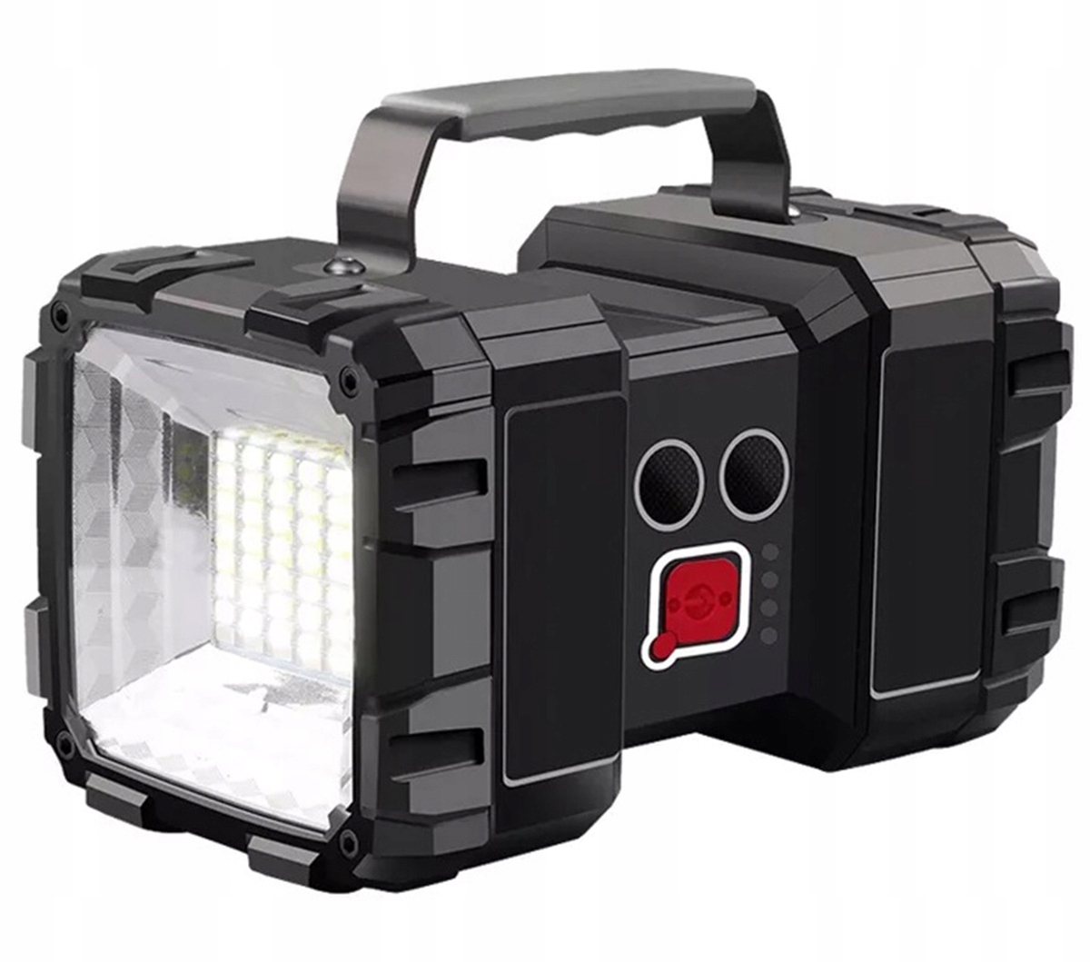 Аккумуляторный фонарь-прожектор, оснащенный мощными светодиодами и функцией ZOOM с огромной дальностью действия до 800 м. Изготовлен из очень прочного пластика, устойчивого к брызгам и сложным погодным условиям. Фонарик имеет очень мощный источник света со сроком службы до 100 000 часов. В устройстве используется встроенный аккумулятор емкостью до 10 000 мАч, что позволяет обеспечить до 20 часов непрерывной работы (в зависимости от выбранного режима). Есть возможность регулировать интенсивность света и активировать стробоскопический режим. Фонарик также водо- и противоударный. Переключатель защищен прочной резиной, а используемые уплотнительные кольца защищают устройство от грязи и пыли.