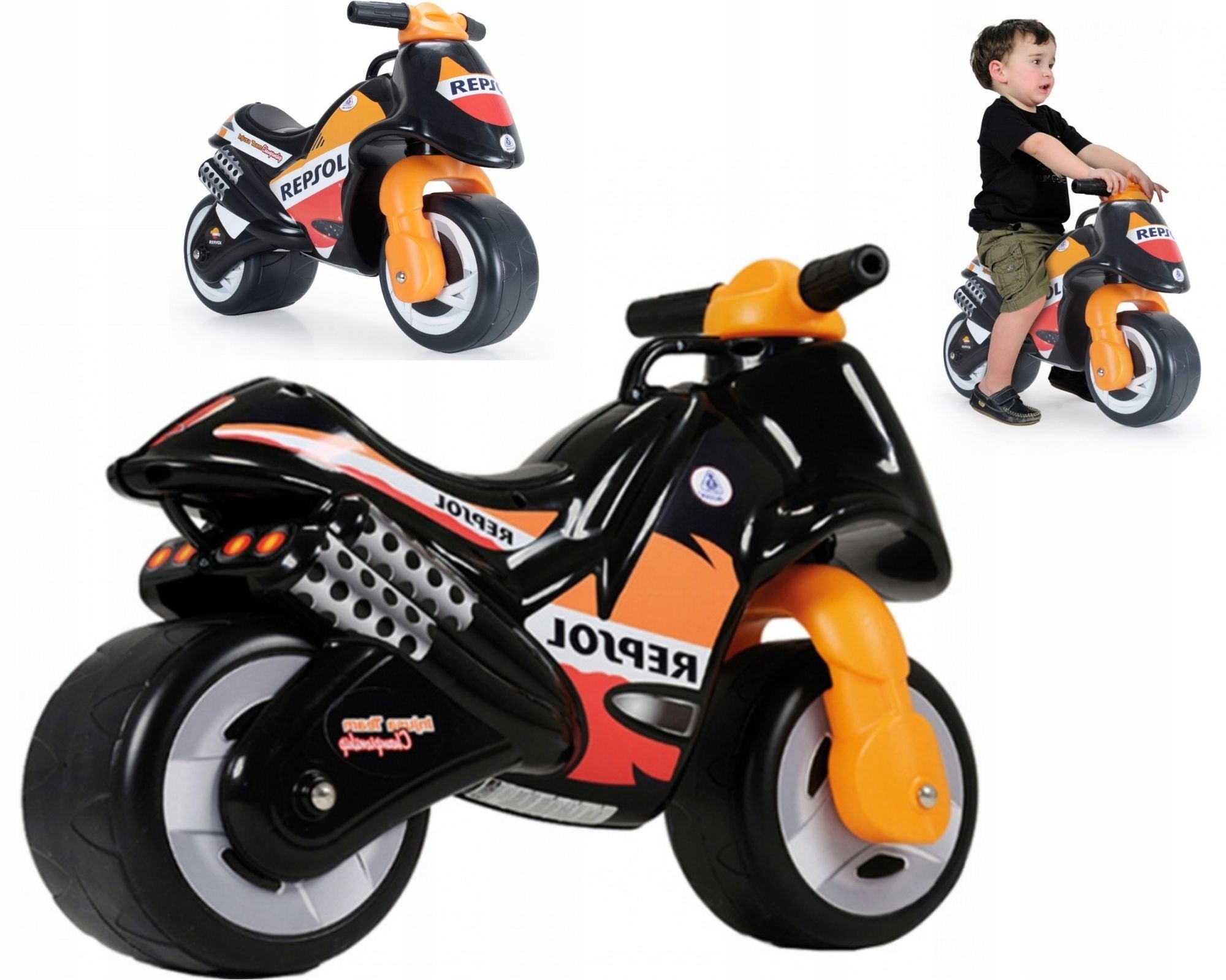 - Каталог с логотип Repsol имеет удобный руль, широкие колеса , облегчающие удержание равновесия, и поворотное переднее колесо.