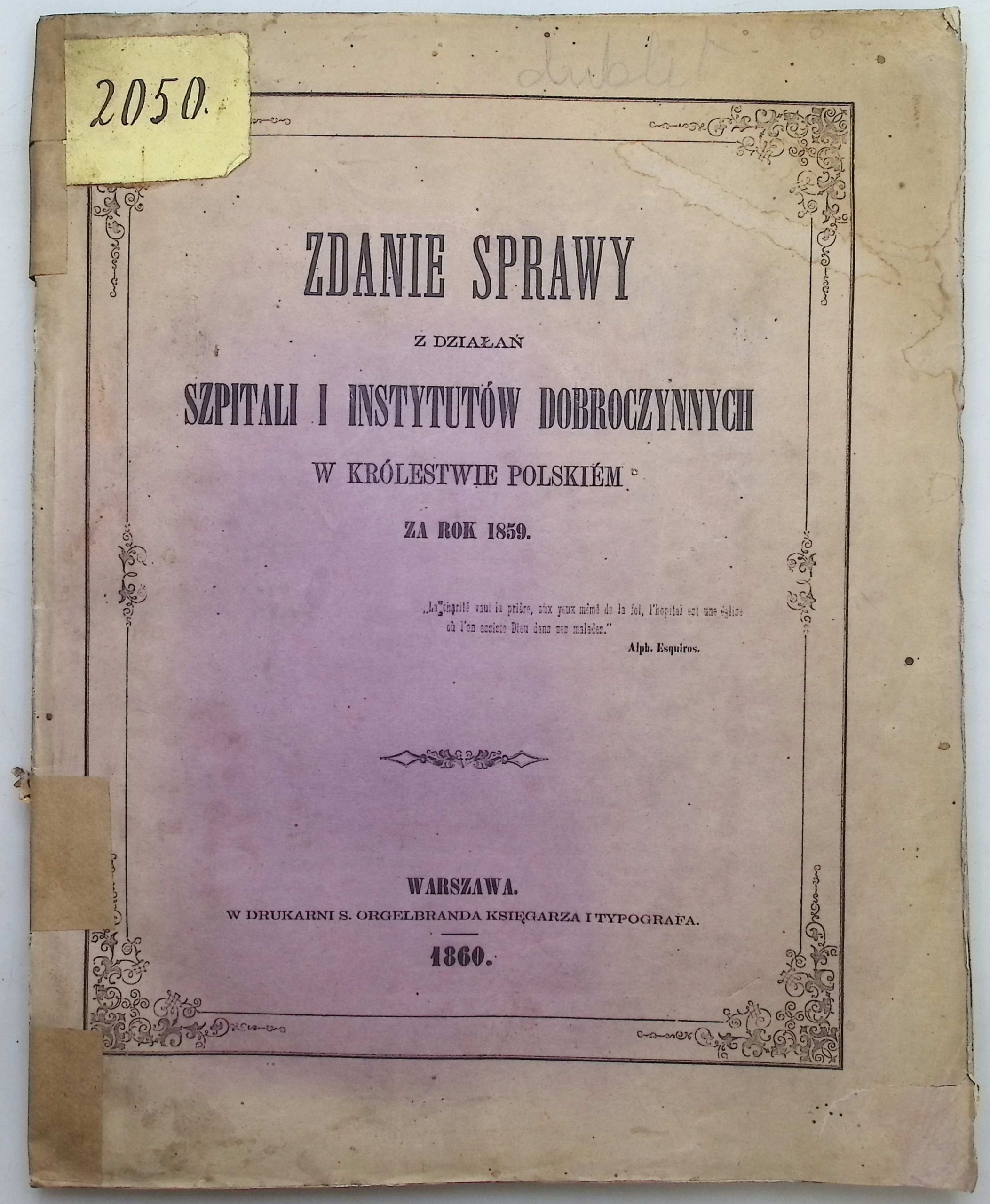 Zdanie sprawy z działań Szpitali i Instytutów Dobroczynnych za rok 1859