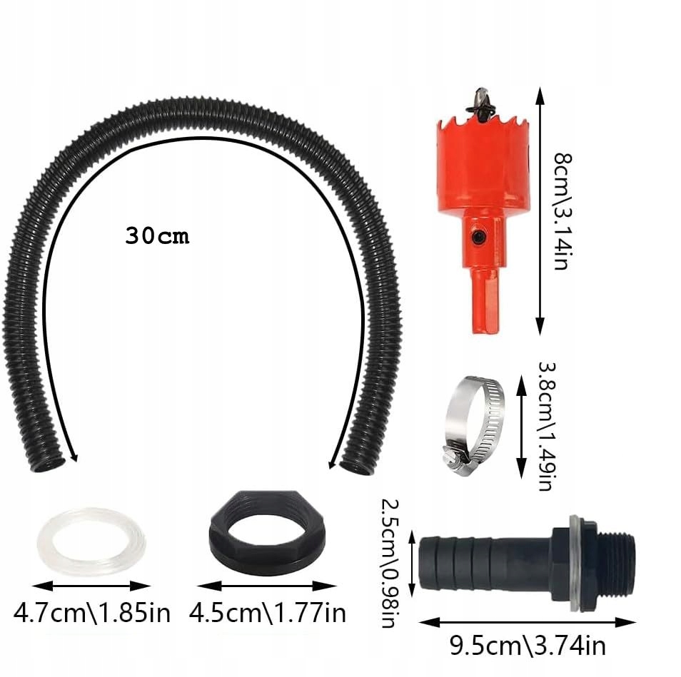 - Набор соединителей для резервуара для дождевой воды - Вы получите 1 комплект аксессуаров для резервуара для дождевой воды и 1 кольцевую пилу для отверстий диаметром 25 мм. Каждый комплект для подключения резервуара для дождевой воды включает в себя 1 шланг длиной 30 см, два соединения для шланга с прокладкой и два хомута из нержавеющей стали.