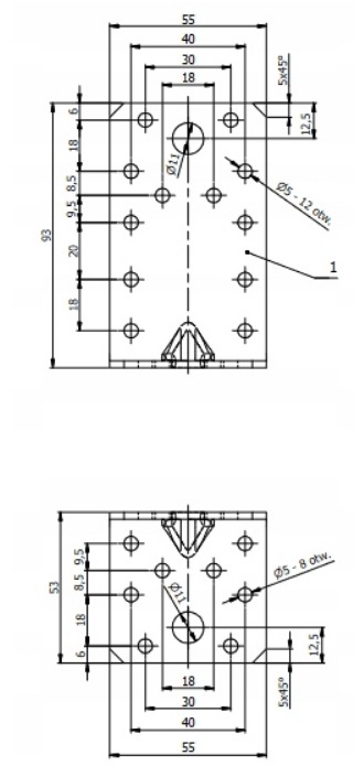 - количество отверстий - 16 отверстий ø5мм, 12 отверстий ø7мм, 2 отверстия ø11мм li> ul>