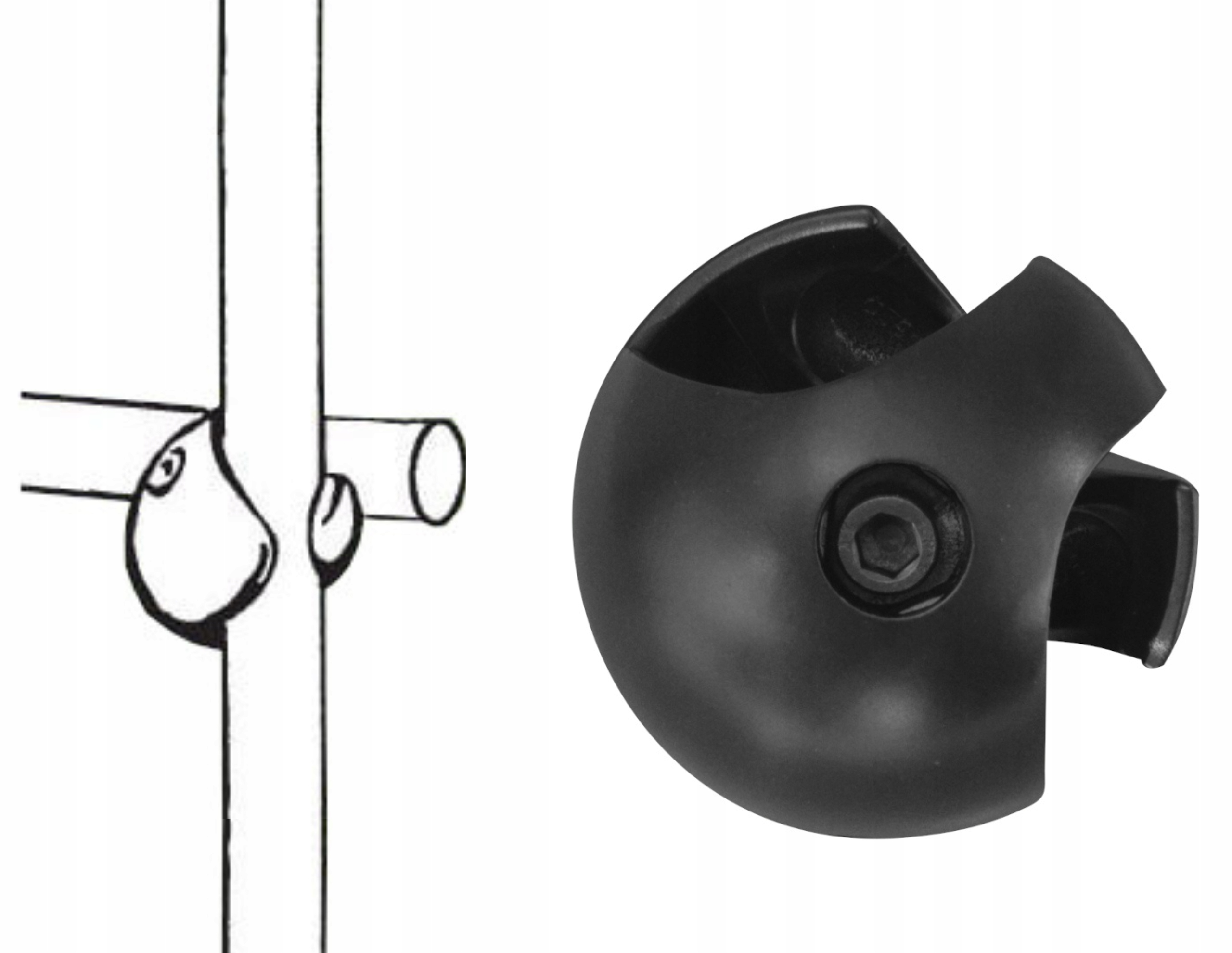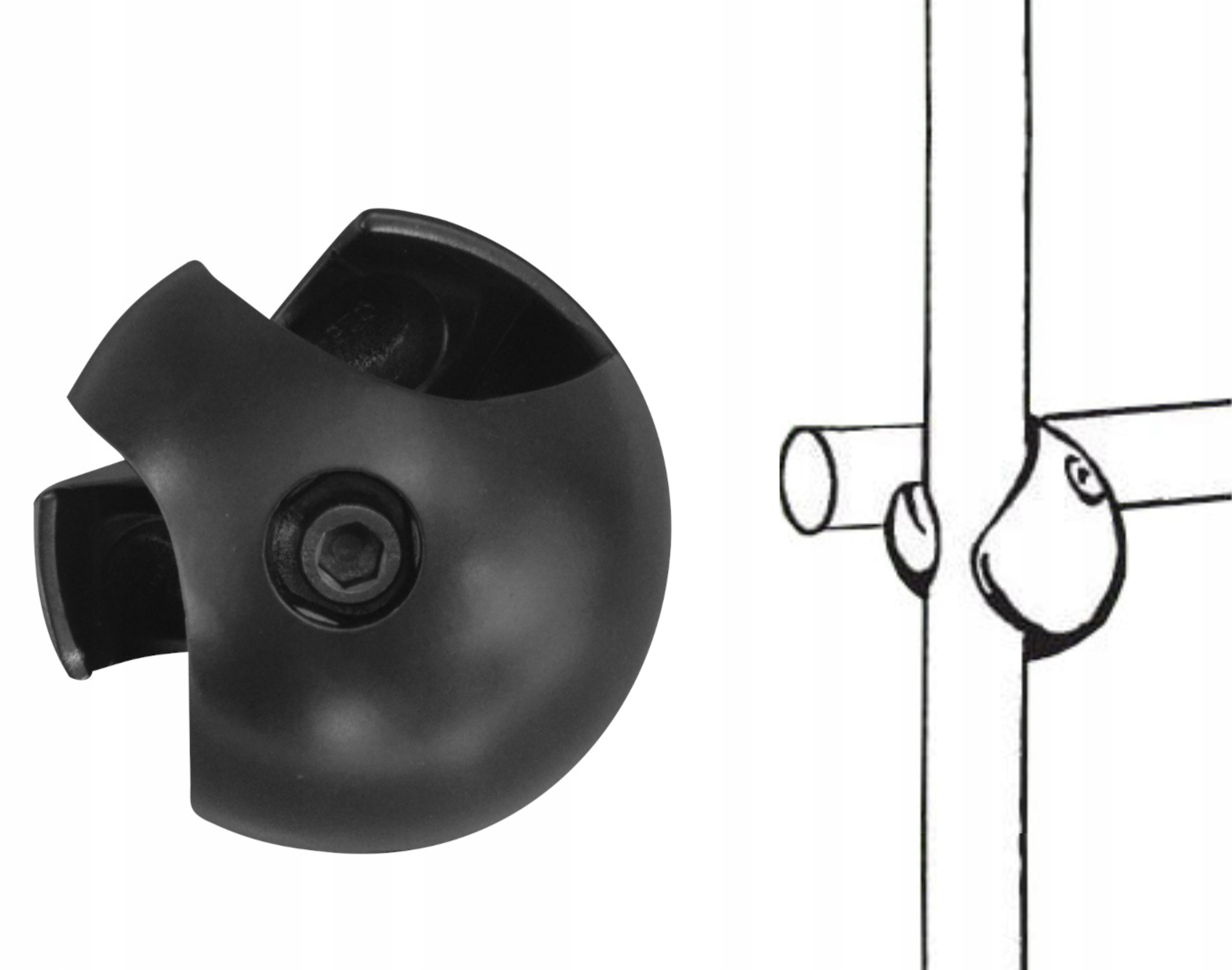 Соединитель двойной для установки в трубно-шаровую систему диаметром 25 мм, для использования в конструкции прилавков, полок, стендов и т.п.