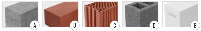 - Основания по ETAG014: A - обычный бетон, B - полнотелый керамический/силикатный кирпич, C - пустотелый кирпич (пустотелый) , D - элементы из легкого заполнителя (ЛАК), Е - газобетон (ААС)