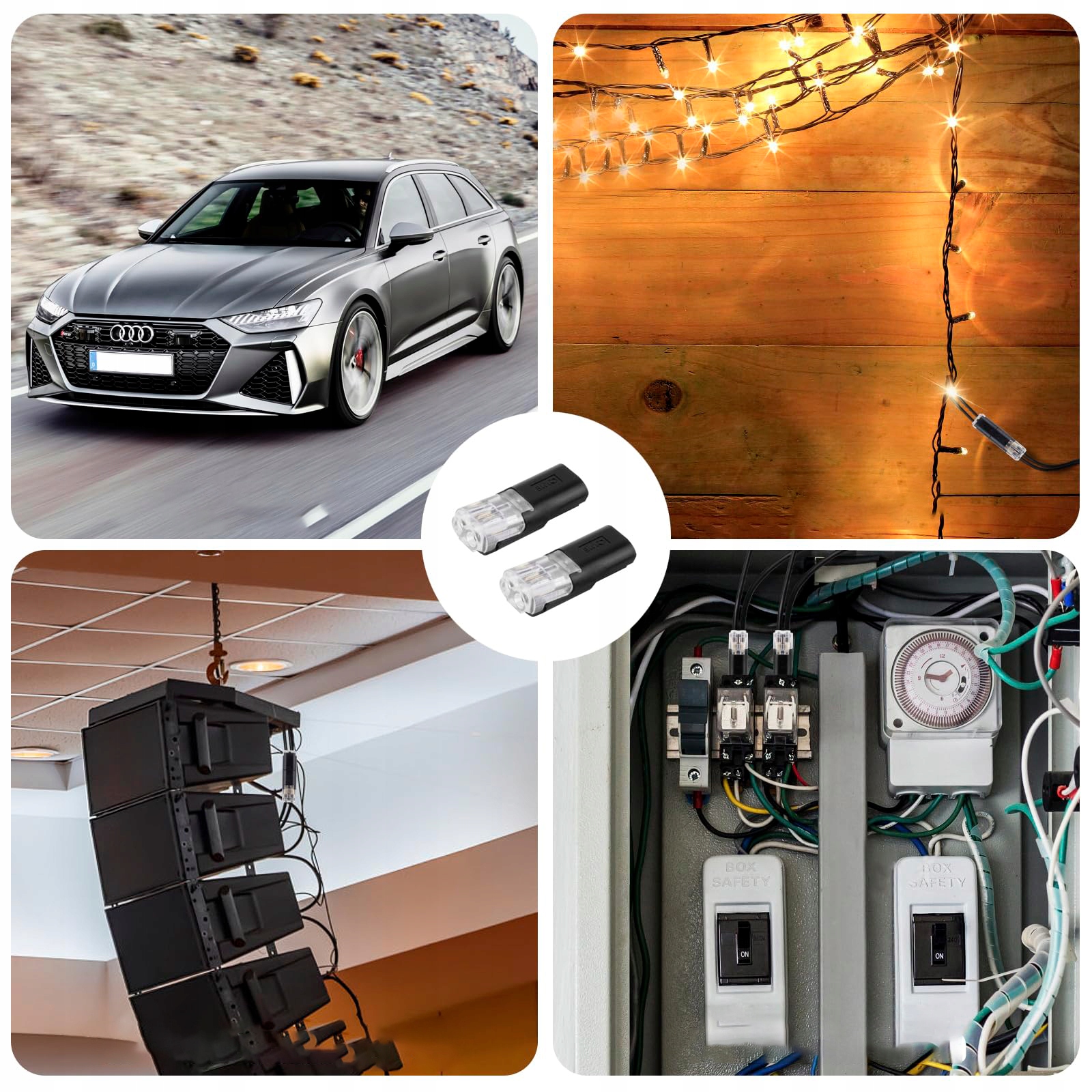 b>】Этот автомобильный быстроразъемный разъем широко используется в низковольтных кабелях 18-22AWG, автомобилях, установках светодиодных лент, аудиосистемах. оборудование, динамики и другое электрооборудование. Этот клеммный разъем идеально подходит для низковольтных бытовых приборов и соединений постоянного тока с низкими потерями.