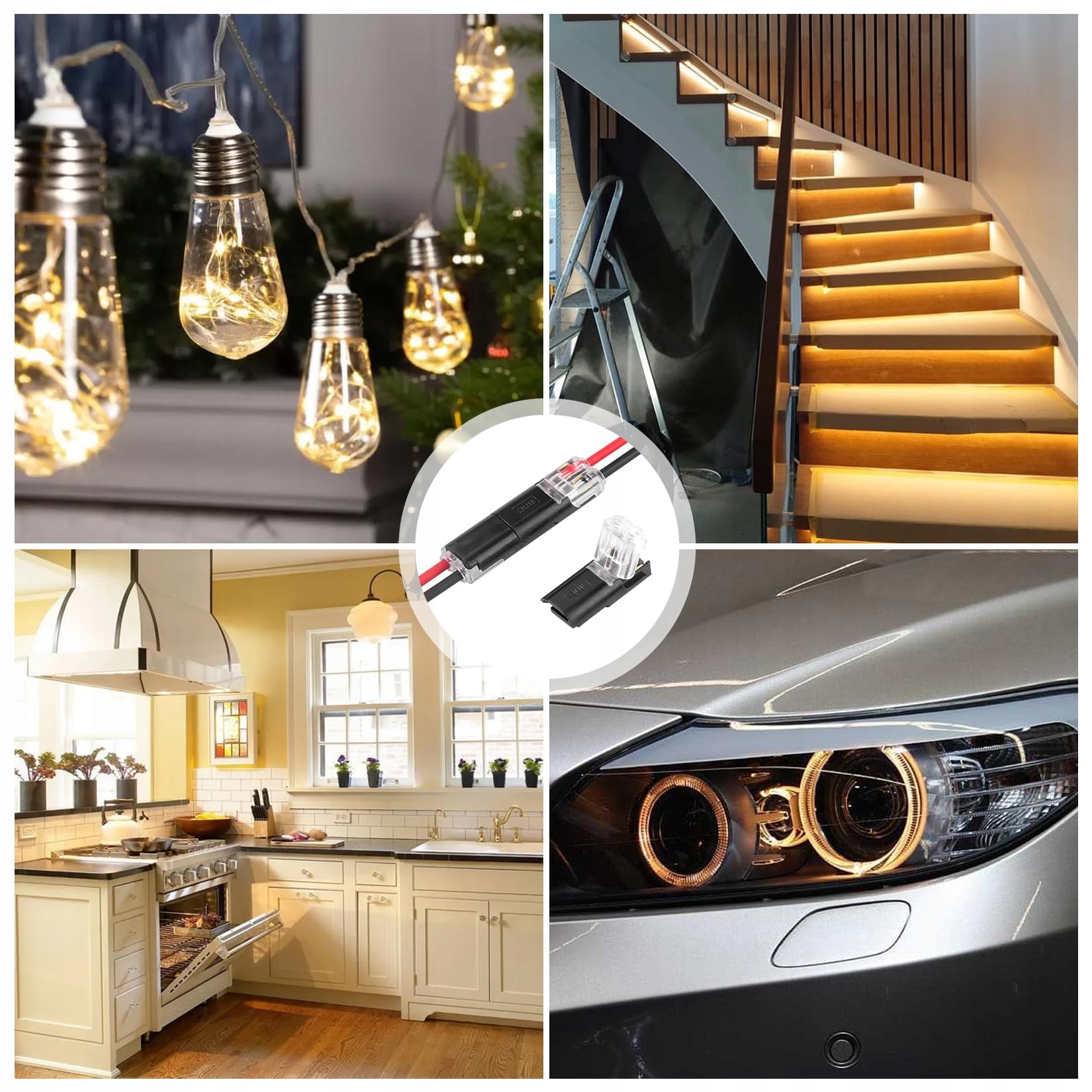 【Разъем для быстрого подключения кабеля】 Водонепроницаемая микроразъем имеет вставную конструкцию и имеет встроенный зажим для соединительного кабеля, что делает подключение кабеля очень удобным. Кроме того, 2-контактный разъем кабеля имеет инновационную конструкцию с замком, которая устраняет необходимость зачистки, навешивания петель и пайки. Больше не нужно зачищать кабели, просто подключите и сожмите провода для быстрого подключения.