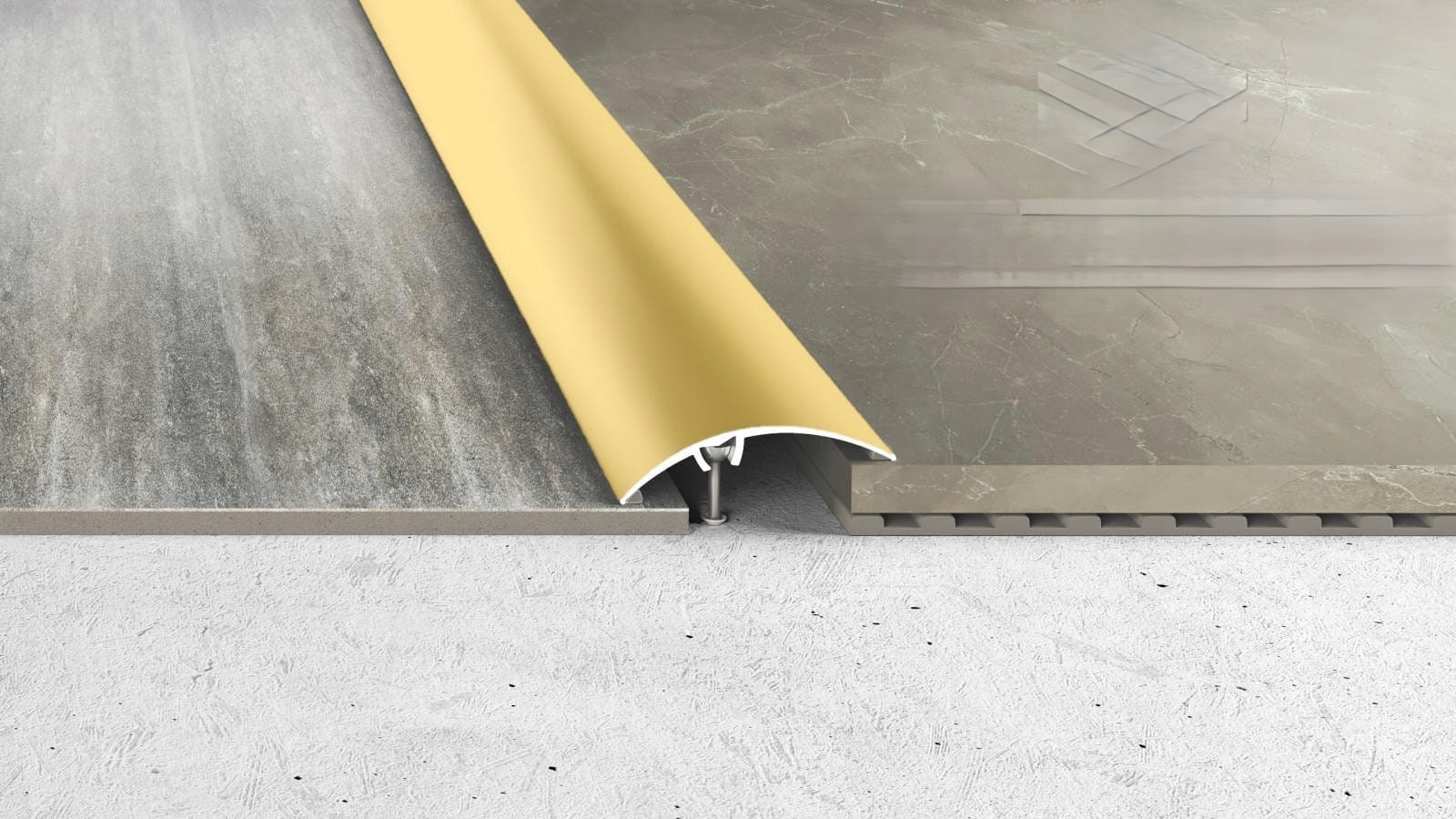 Полоска для быстрой сборки с силиконовой прокладкой. Прочное изделие, предназначенное для неразъемного соединения полов с перепадом высот до макс. 16 мм, закрывающий зазоры между полами. Крепится снизу на штифты, которые невидимы и надежно прикрепляют его к земле. Имеет силиконовый уплотнитель, предотвращающий попадание пыли под планку.