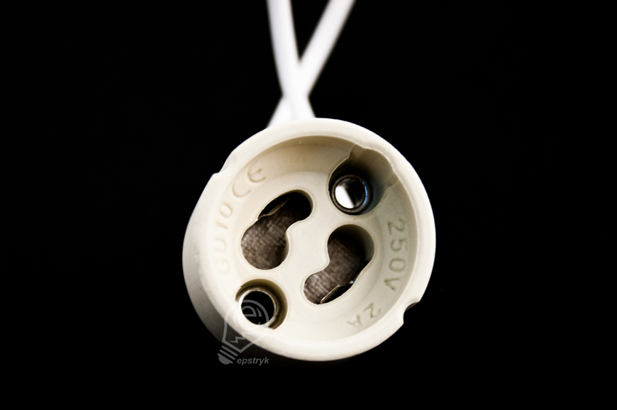 Керамический патрон предназначен для галогенных ламп с цоколем GU10, питаемых напряжением не более 250В.